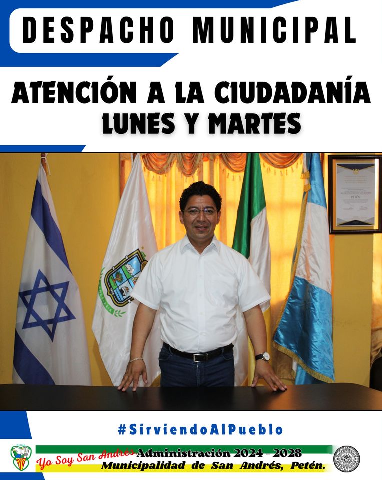 El Lic. Jonne Axel Méndez Bardales. Alcalde del municipio de San Andrés, Petén. Inicia su gestión municipal informando; que la atención a los vecinos y vecinas en el despacho municipal serán los días lunes y martes.