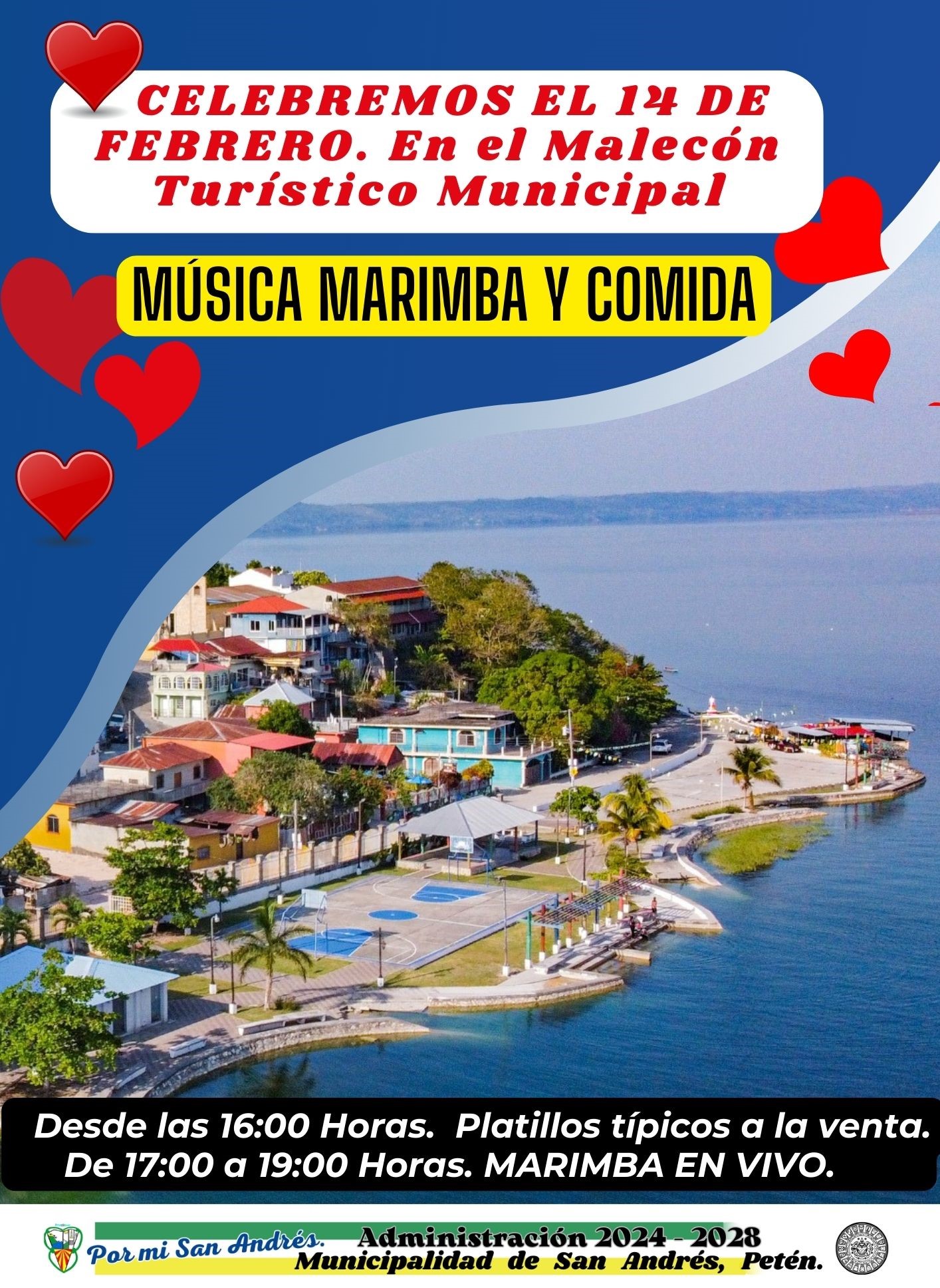 A la población en general se le invita a que se una a celebrar el 14 de febrero. En el Malecón Turístico Municipal de San Andrés, Petén.