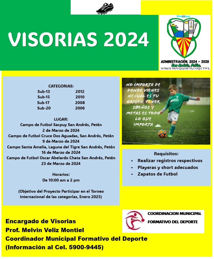 La Coordinación Municipal Formativo del Deporte. Implementa las VISORIAS 2024. en el municipio de San Andrés, Petén. Y sus comunidades.