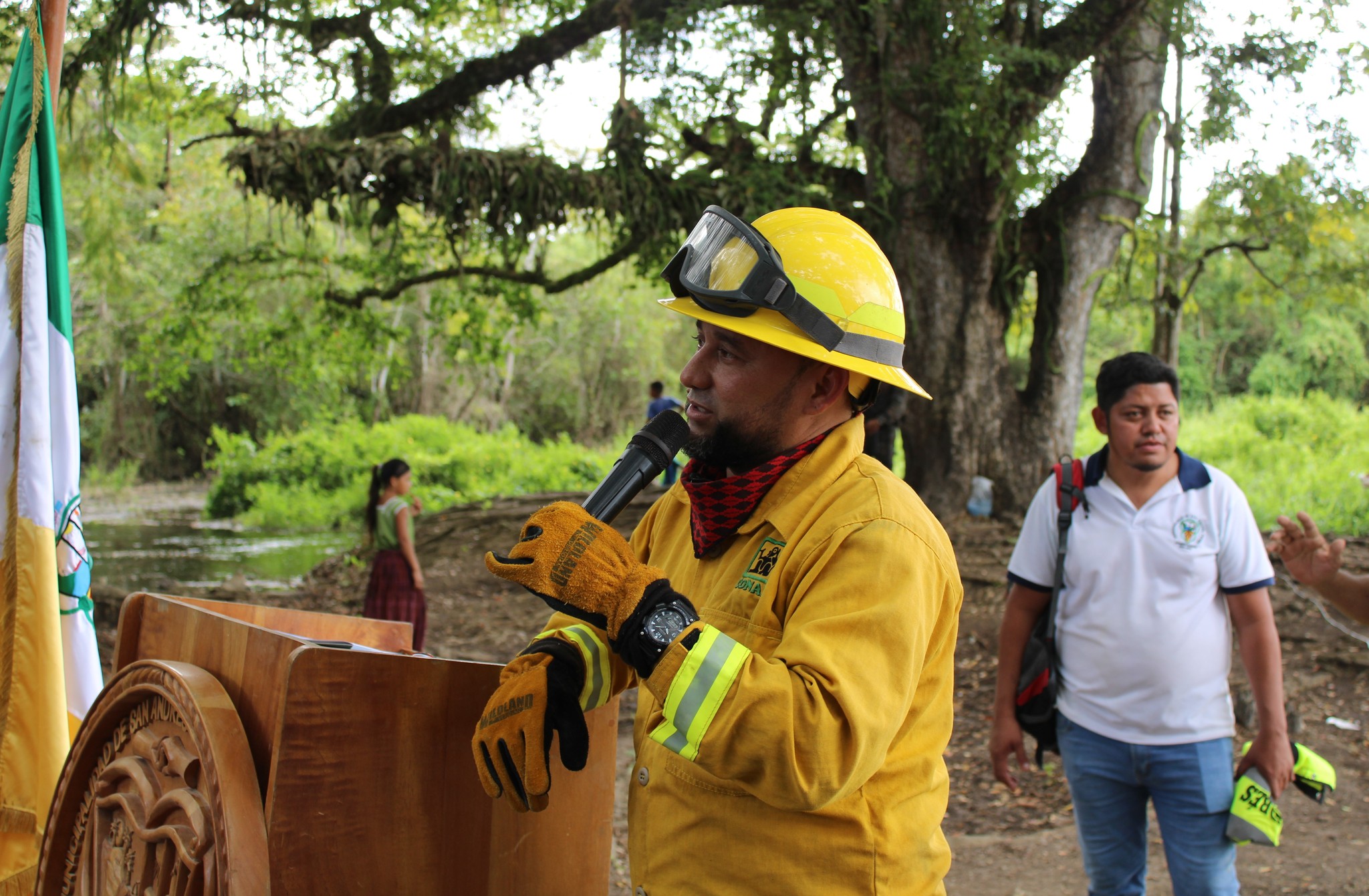 El Lic. Jonne Méndez Bardales. Alcalde Municipal de San Andrés, Petén. Y Equipo Técnico. Participó de dicha actividad conmemorativa. realizada en Paso Caballos San Andrés, Petén.