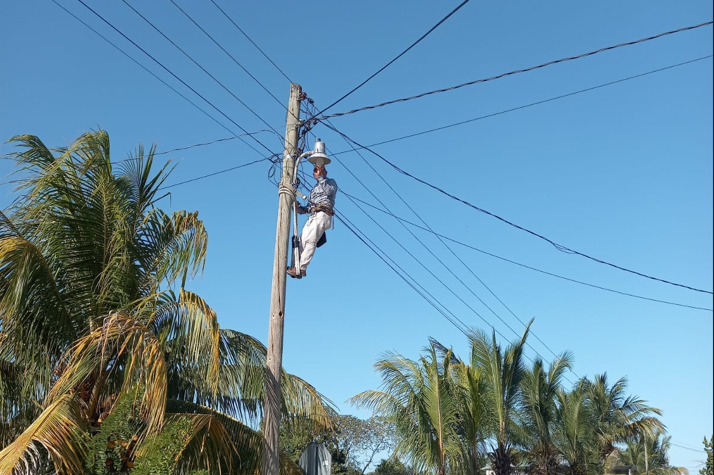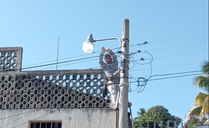 Los electricistas municipales trabajan de acuerdo a planificación establecida en base a inspección de campo realizada recientemente.