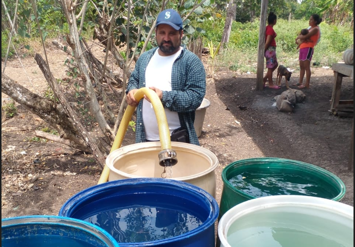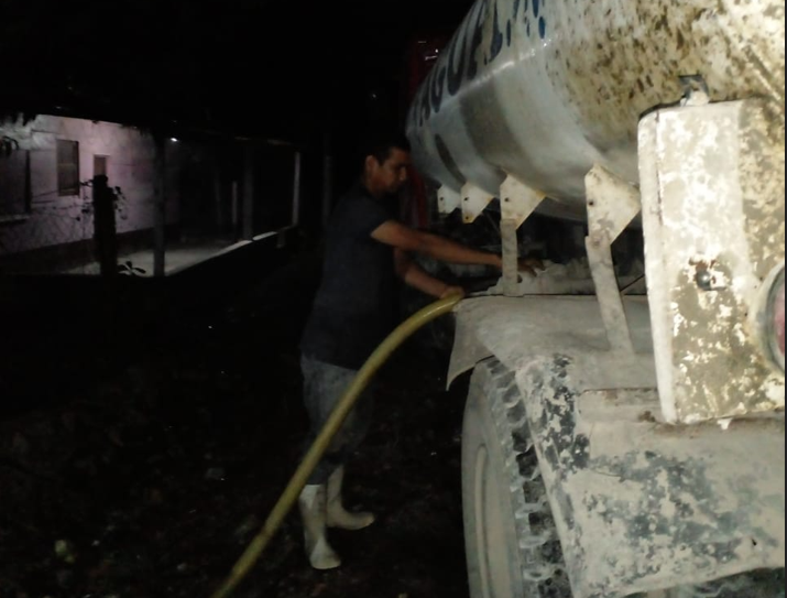 Desde muy temprano continúa trabajando durante esta semana, en la distribución de agua por medio de pipas en la comunidad de San Jorge, San Andrés, Petén.