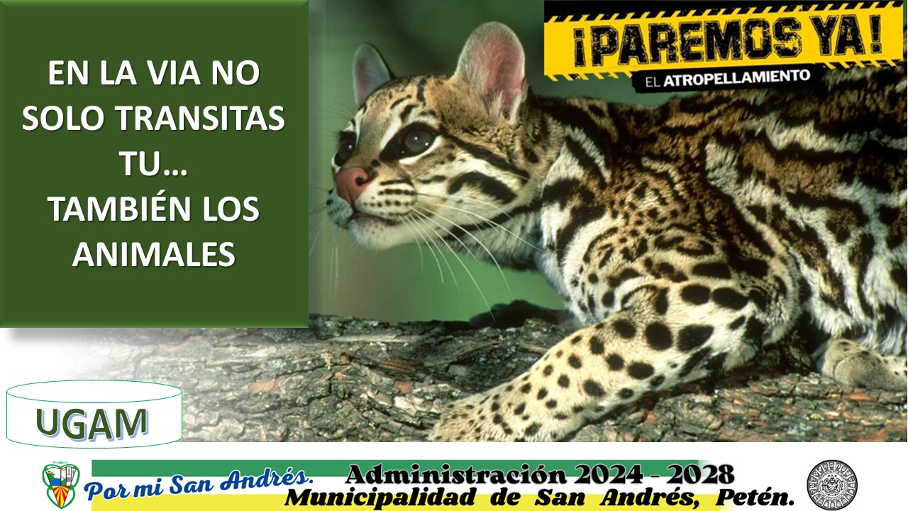 A la población automovilística y motorizada que transitan en áreas de calles que conduce a San Andrés, Departamento de Petén. Con incidencia de cruce de vida silvestre recomienda: