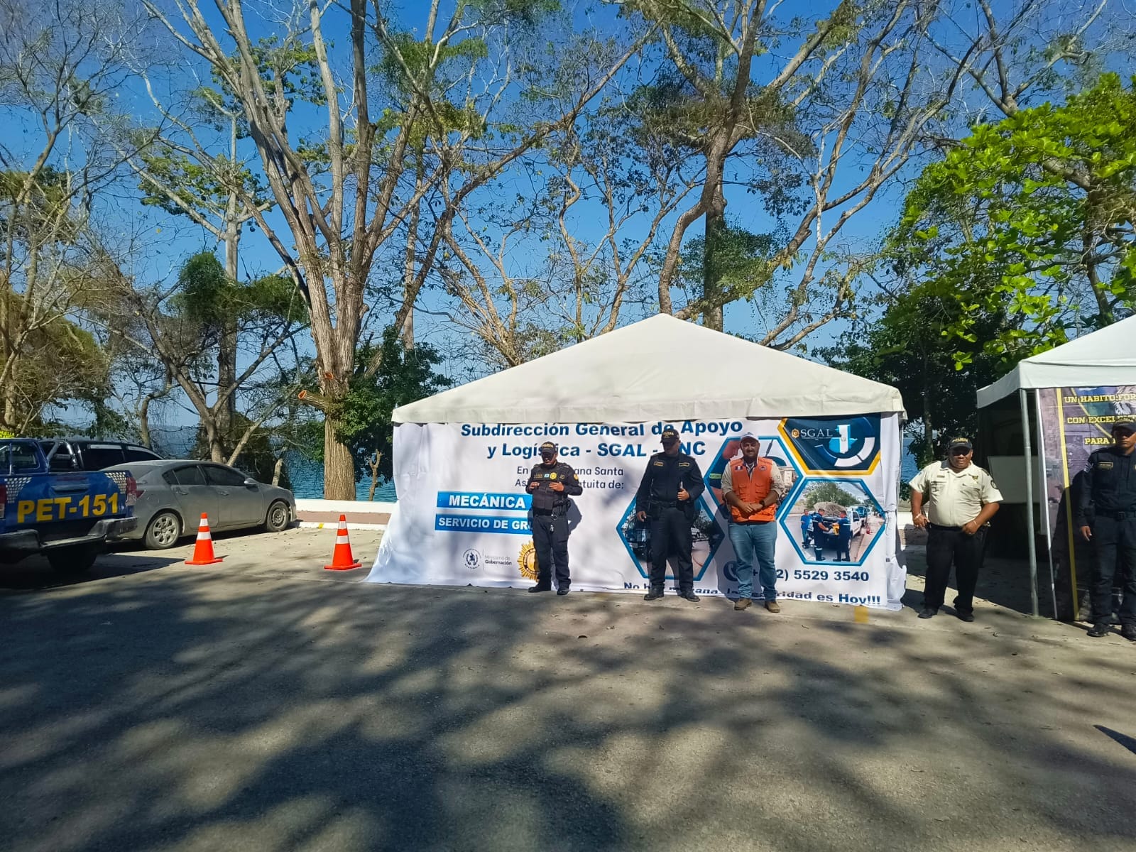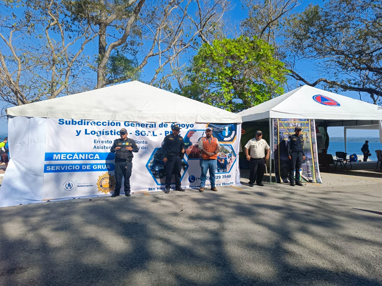 La Policía Nacional Civil PNC Comisaria 62 Peten Desde hoy. Hace presencia en el Campamento Playa la Ensenada. San Andrés, Petén.