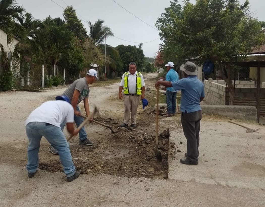 A los automovilistas y población en general informa: Que La Jefatura Municipal trabaja en el bacheo de calle principal en Barrio Norte.