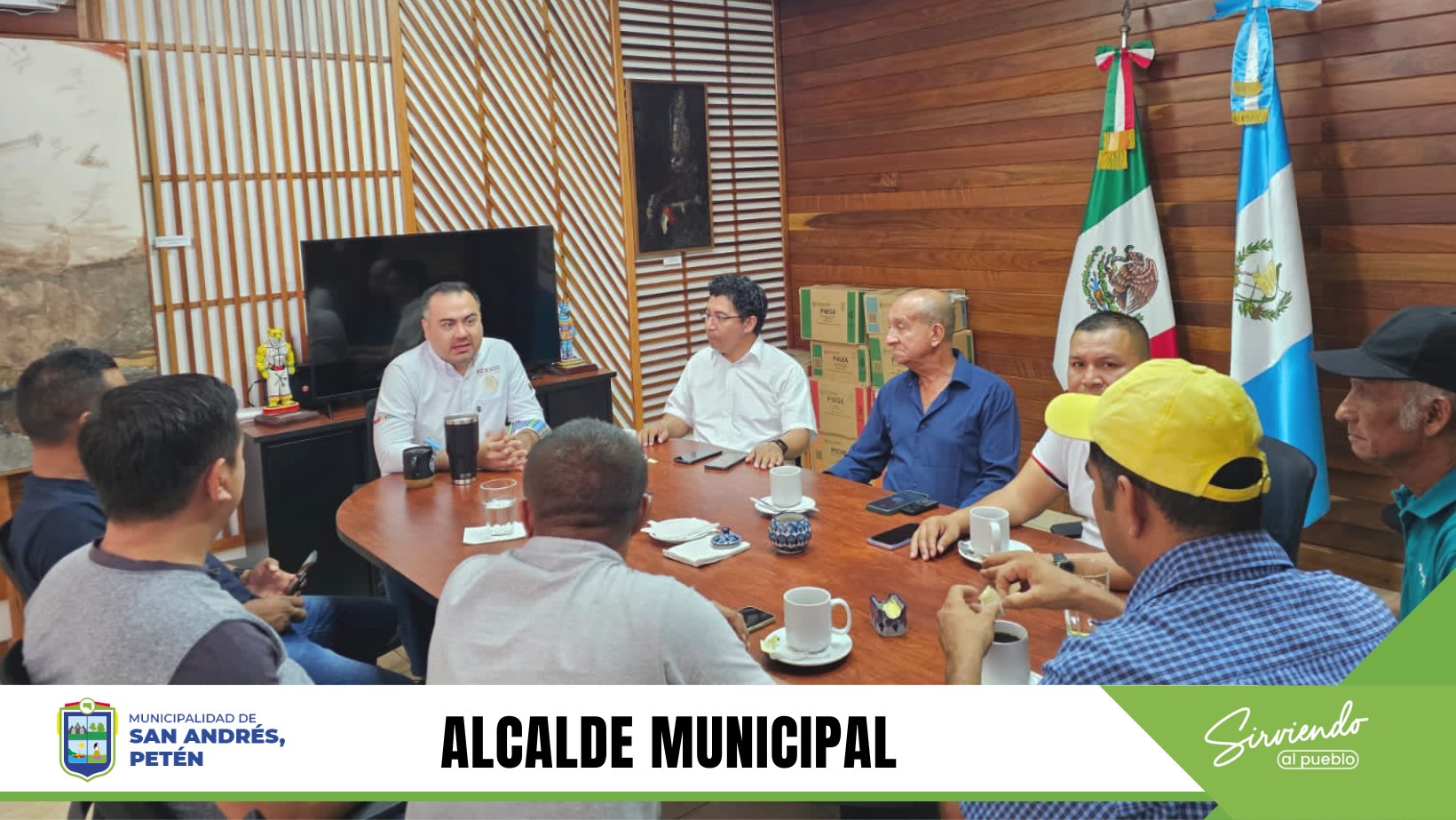 El alcalde municipal Lic. Jonne Méndez Bardales y Corporación Municipal se reúnen con el Cónsul de México en Petén, Lic. Iván González, para establecer bases de colaboración a través de líneas estratégicas como educación superior, turismo, ganadería, entre otros.