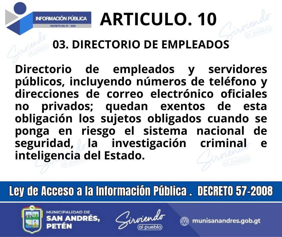 Del articulo 10 de la Ley de Acceso a la Información Pública. DECRETO 57-2008.