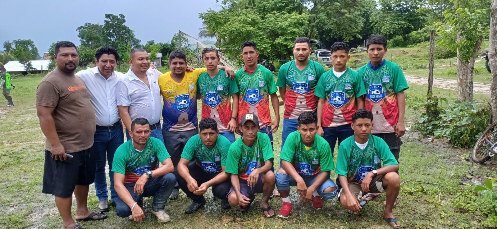 El Sr. Alcalde municipal de San Andrés, Petén. Lic. Jonne Méndez Bardales. Acompañado del Sr. Silvestre Morales Concejal II En representación de la Honorable Corporación municipal, compartió con la comunidad de Paso Caballos, varios equipos y vecinos de diferentes comunidades.