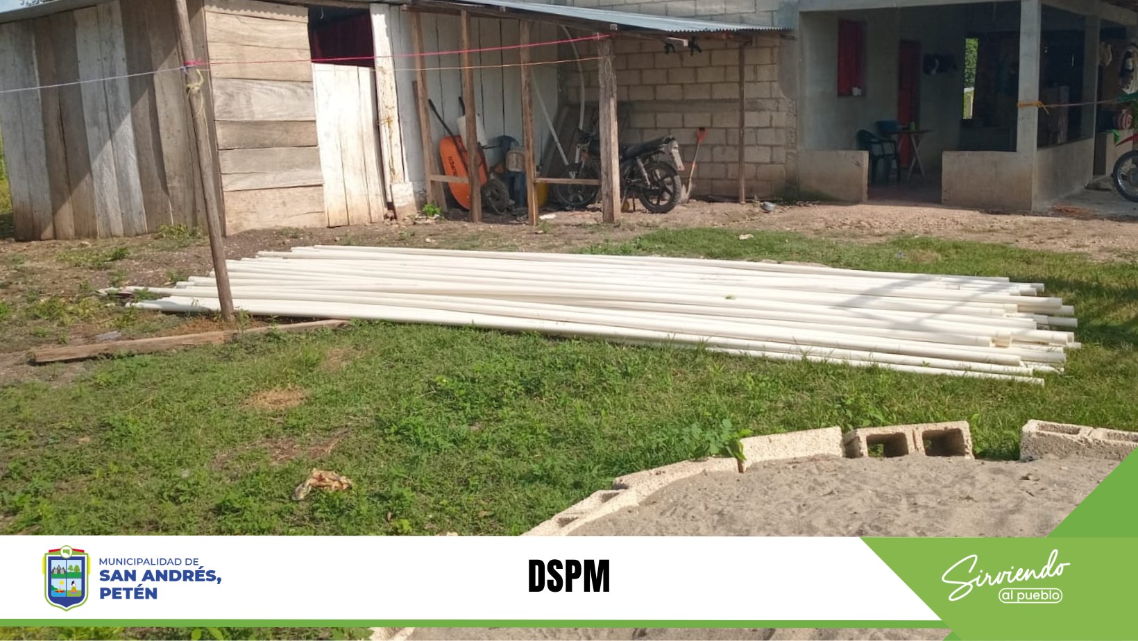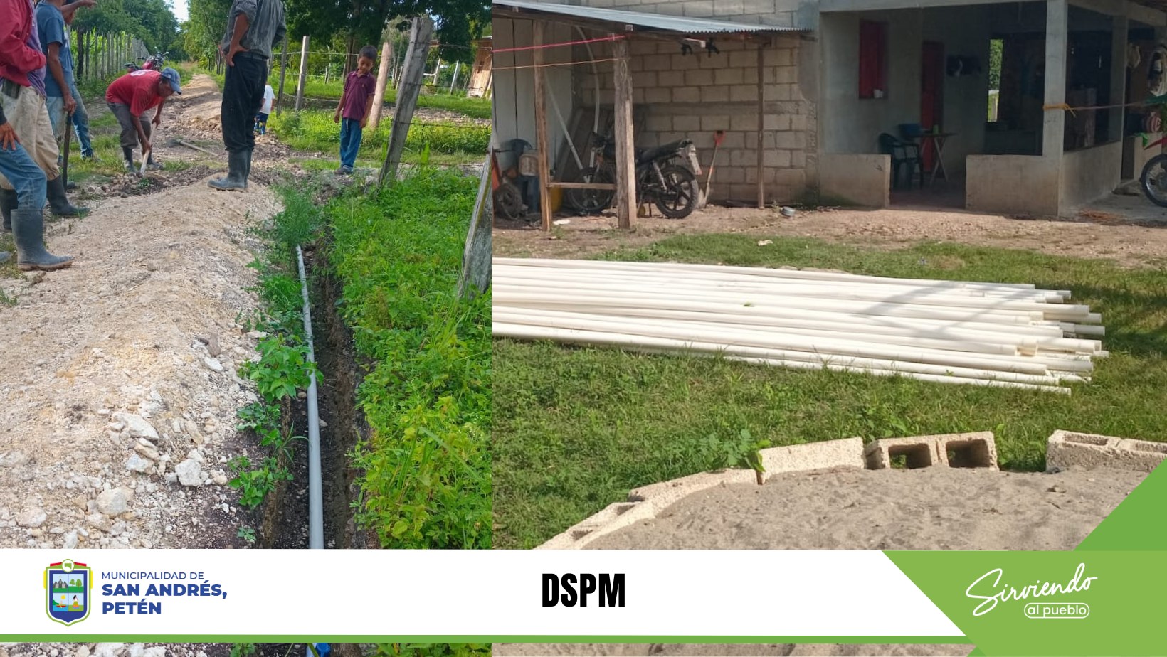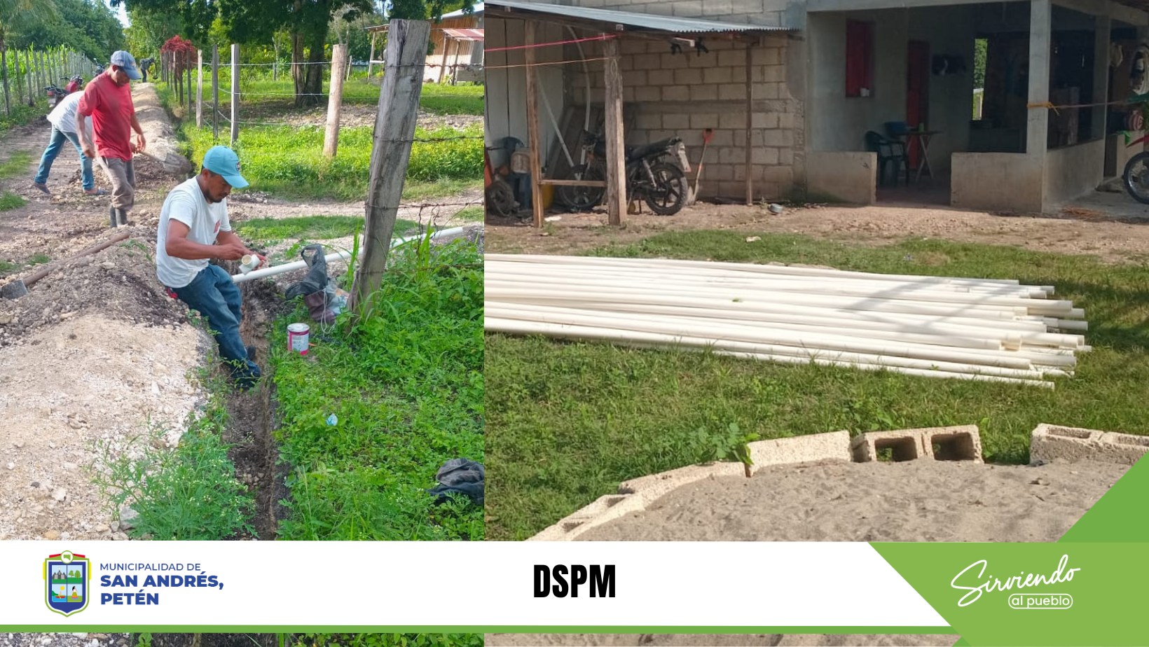 Por medio de la Dirección de servicios Públicos Municipales DSPM. Se trabaja en la ampliación de la red de distribución de agua entubada en San Antonio las Brisas, San Andrés, Petén. Este trabajo permitirá que mas de 15 familias obtengan el servicio de agua domiciliar quienes anteriormente no contaban con el servicio.