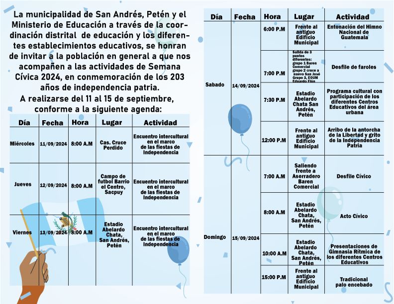 SEMANA CIVICA SAN ANDRÉS, PETÉN. 2O3 AÑOS DE INDEPENDENCIA. GUATEMALA 2024