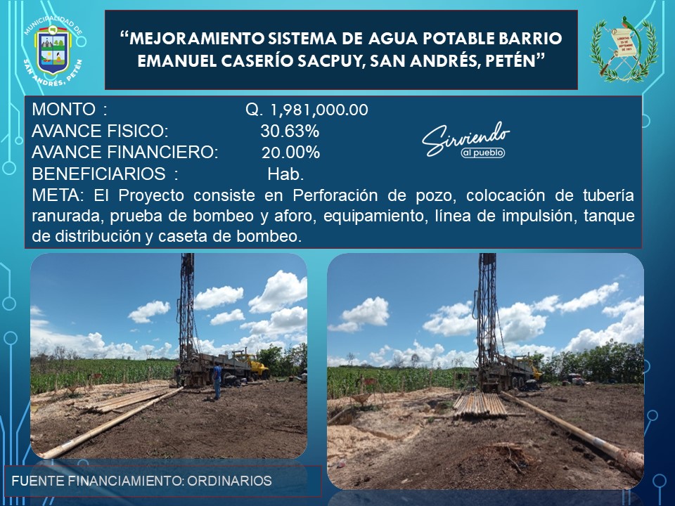Informe del Proyecto MEJORAMIENTO SISTEMA DE AGUA POTABLE BARRIO EMANUEL CASERÍO SACPUY, SAN ANDRÉS, PETÉN