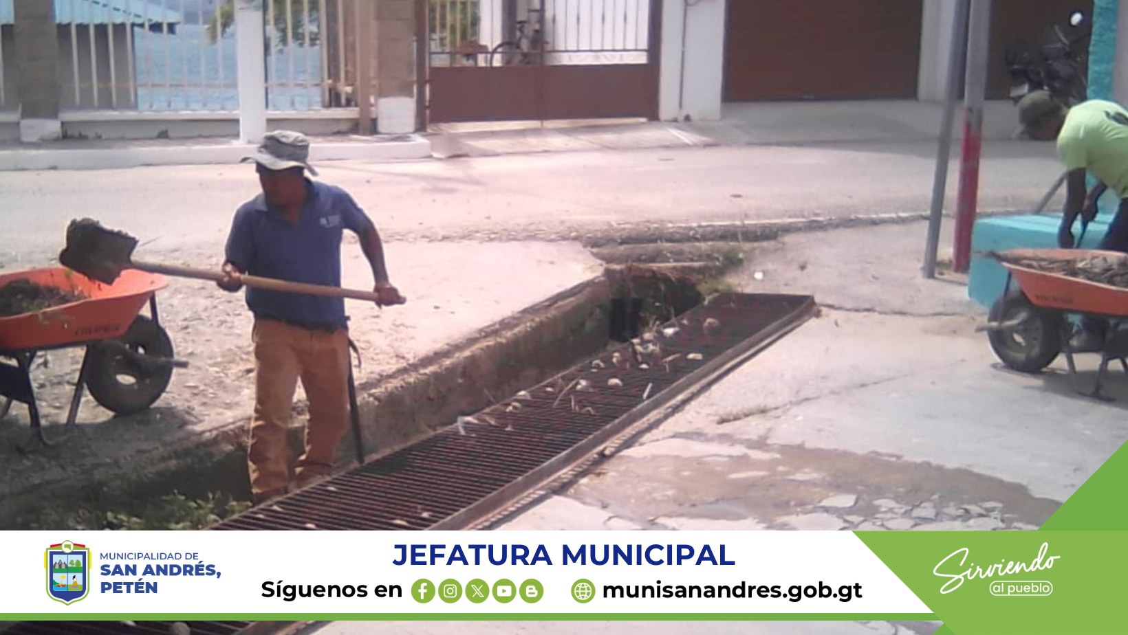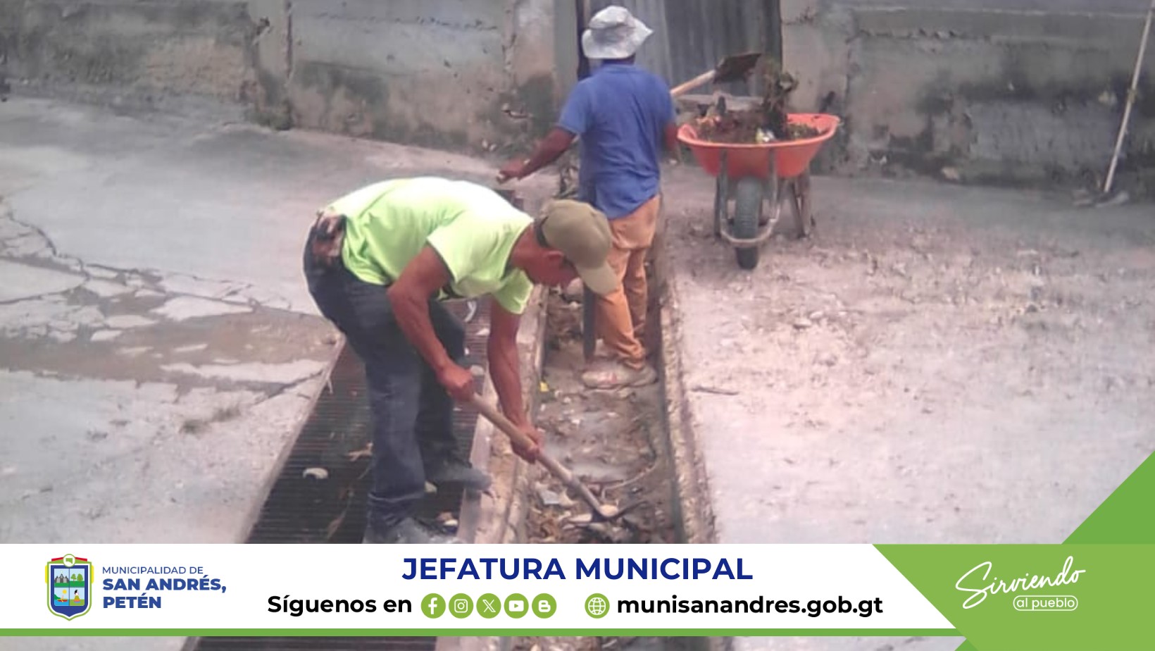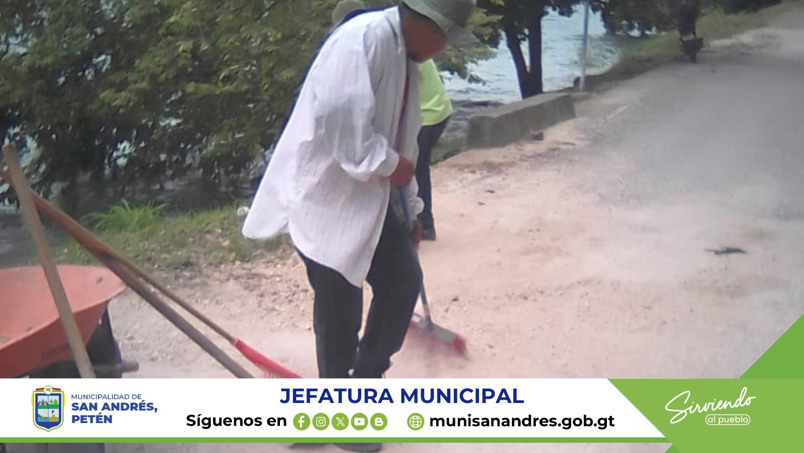 La Jefatura Municipal de San Andrés, Petén realiza trabajos de limpieza en cunetas ubicadas en áreas del Primer Malecón Turístico municipal.