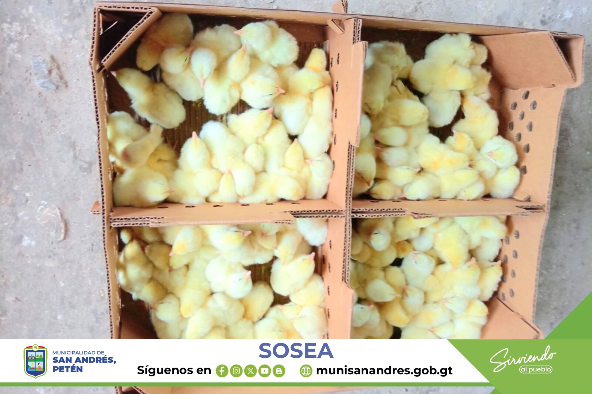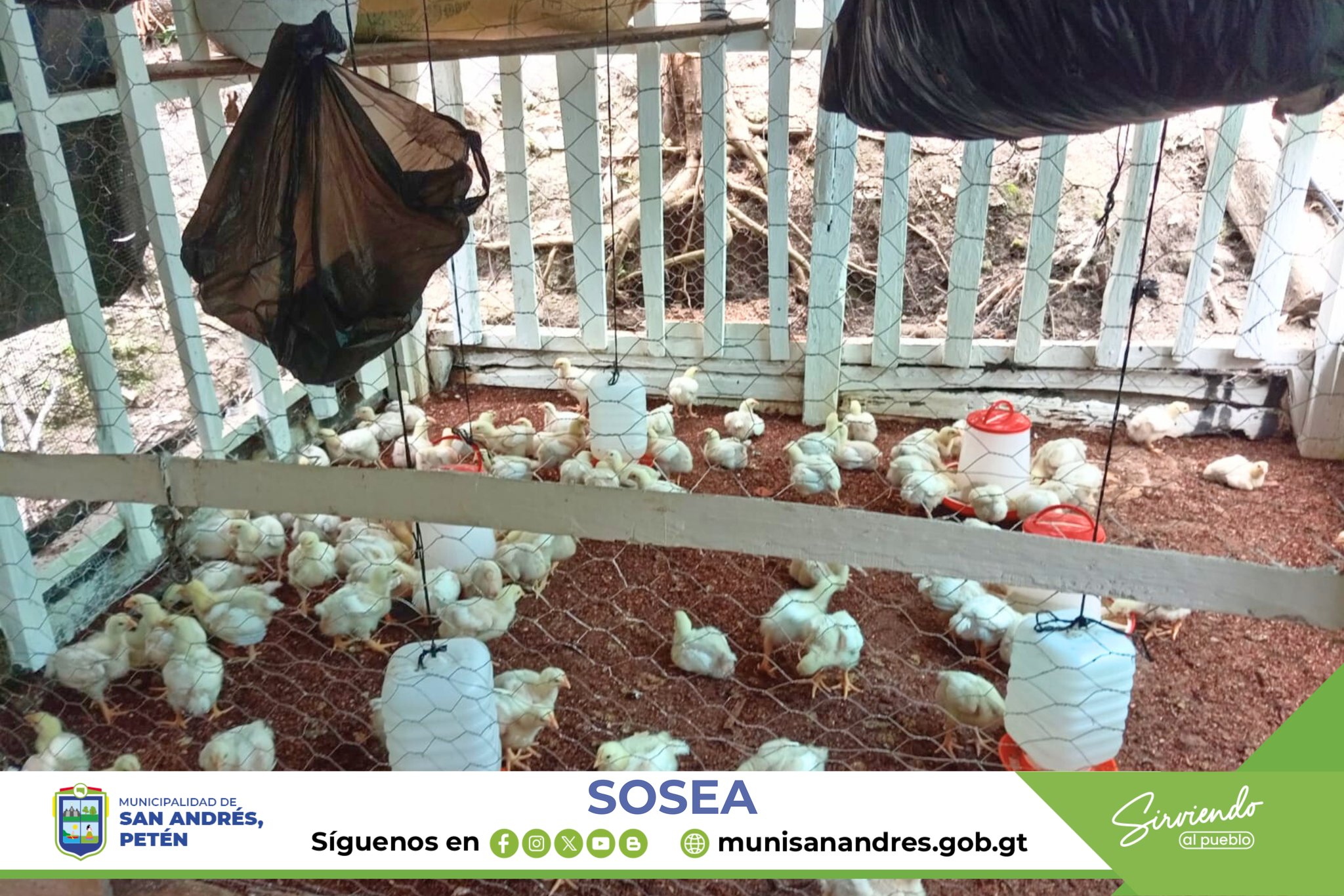El alcalde municipal Lic. Jonne Méndez Bardales y Honorable Concejo de San Andrés, Petén. Junto a la Secretaría de Obras Sociales de la Esposa del Alcalde (SOSEA) Continúa con las gestiones de mucha relevancia ante DAGRO- MAGA para poder dotar de pollos, comederos, bebederos, concentrados y multivitamínicos a diferentes grupos de mujeres, esta vez se hizo entrega en la cabecera municipal de San Andrés, Petén esto con la finalidad de ayudar a la sostenibilidad económica de las familias comunitarias.