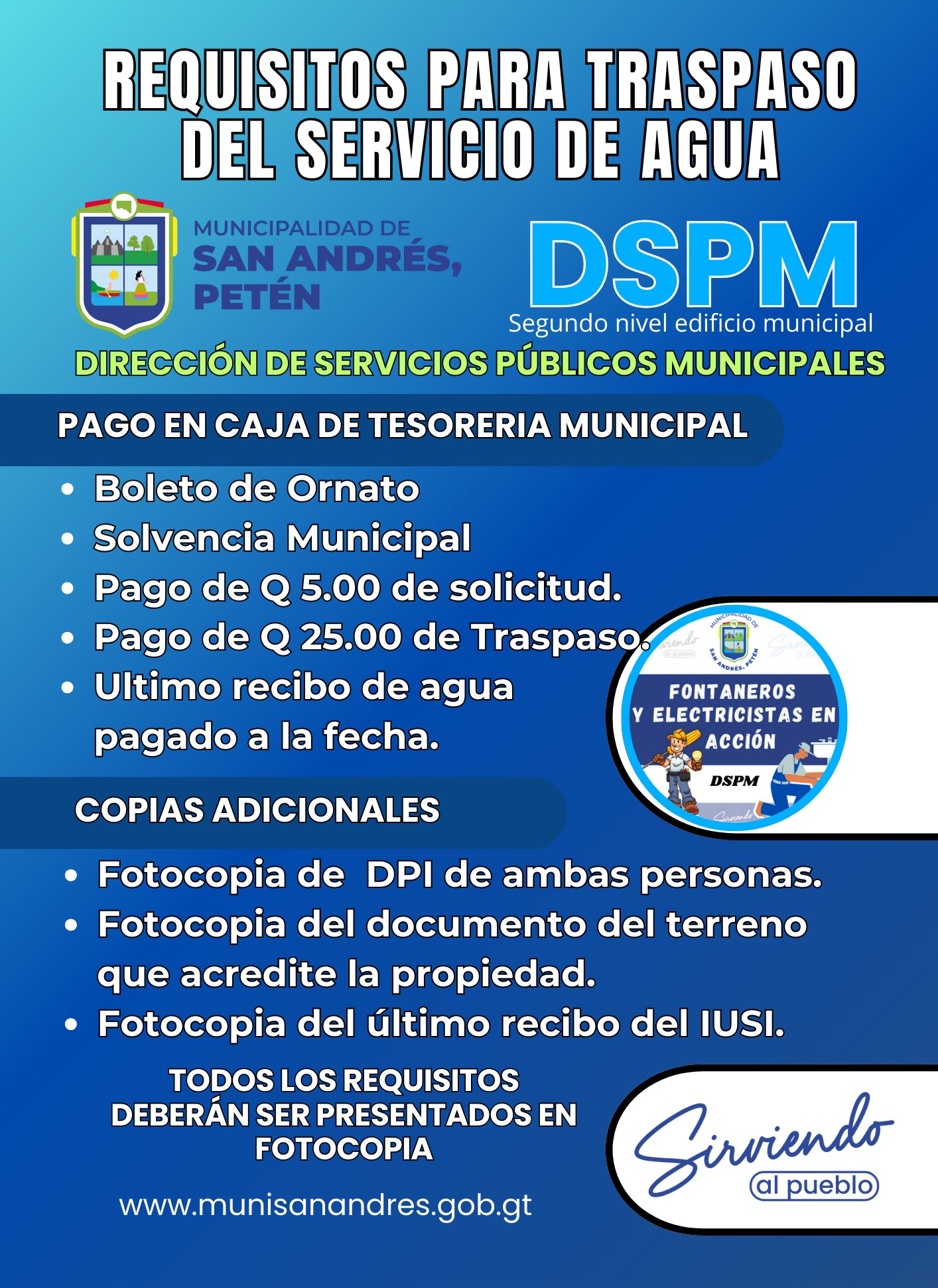 Para los usuarios que desean realizar Traspaso de agua en el municipio de San Andrés, Petén.