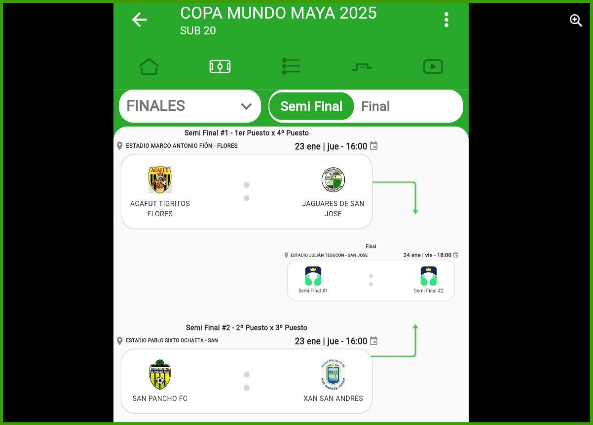 En la categoría sub 20 el equipo Xan San Andrés disputo un partido la noche de ayer miercoles ante el equipo Atletico San josé obteniendo un triunfo de 2 a 1 el partido de semifinales esta programado para el dia de hoy jueves 23 de enero a las 4:00 pm en el pablo Sixto Ochaeta donde van a enfrentar al aguerrido equipo de San Pancho Fc.