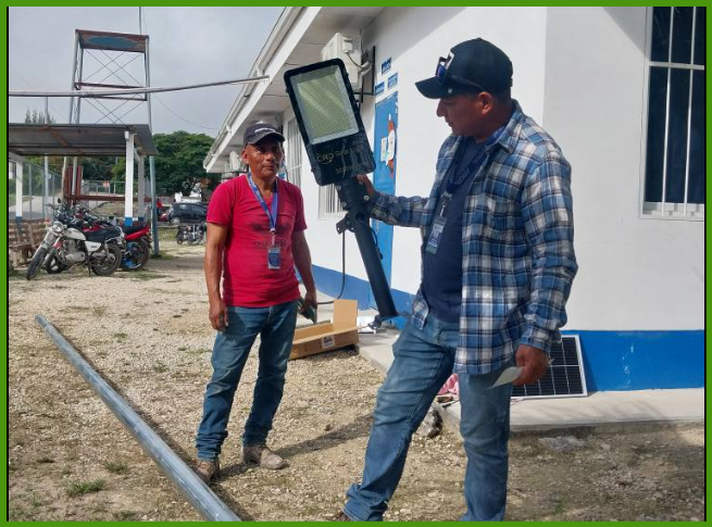 Por Instrucciones del Sr. Alcalde Lic. Jonne Méndez Bardales personal de Riesgos (DIMGIRD), Servicios Públicos y Jefatura Municipal trabaja en la instalación de lámparas en todo el perímetro del Centro de Atención Permanente (CAP) un trabajo Interinstitucional que apoya la Municipalidad de San Andrés, Petén con la Mano de obra.