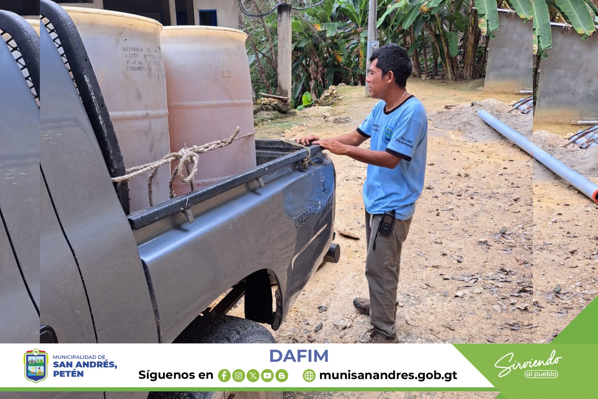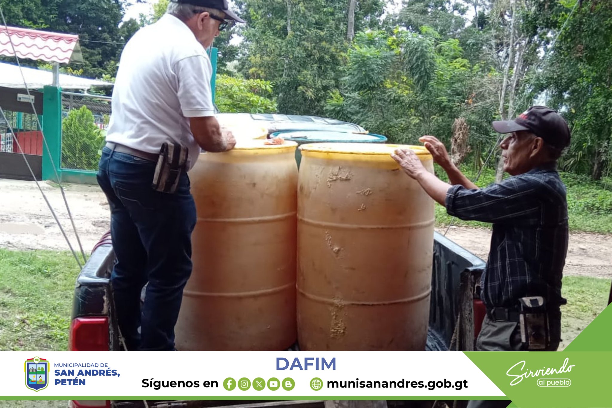La Dirección Administrativa Financiera Municipal (DAFIM) en coordinación con la Dirección de Servicios Públicos Municipales (DSPM) Lleva a cabo el abastecimiento de combustible para generadores a las mas de 16 estaciones de bombeo de agua en la cabecera municipal y comunidades de San Andrés, Petén.