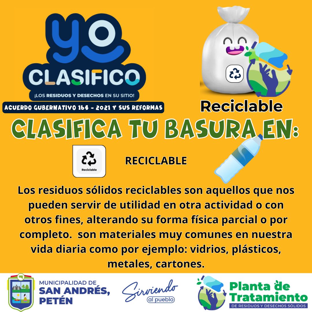 El Sr. Alcalde y Honorable Concejo municipal de San Andrés, Petén. Invitan a los vecinos del municipio a hacer uso de los servicios de la Planta de Tratamiento Municipal San Andrés, Petén y a seguir con la implementación de la clasificación de los residuos y desechos.