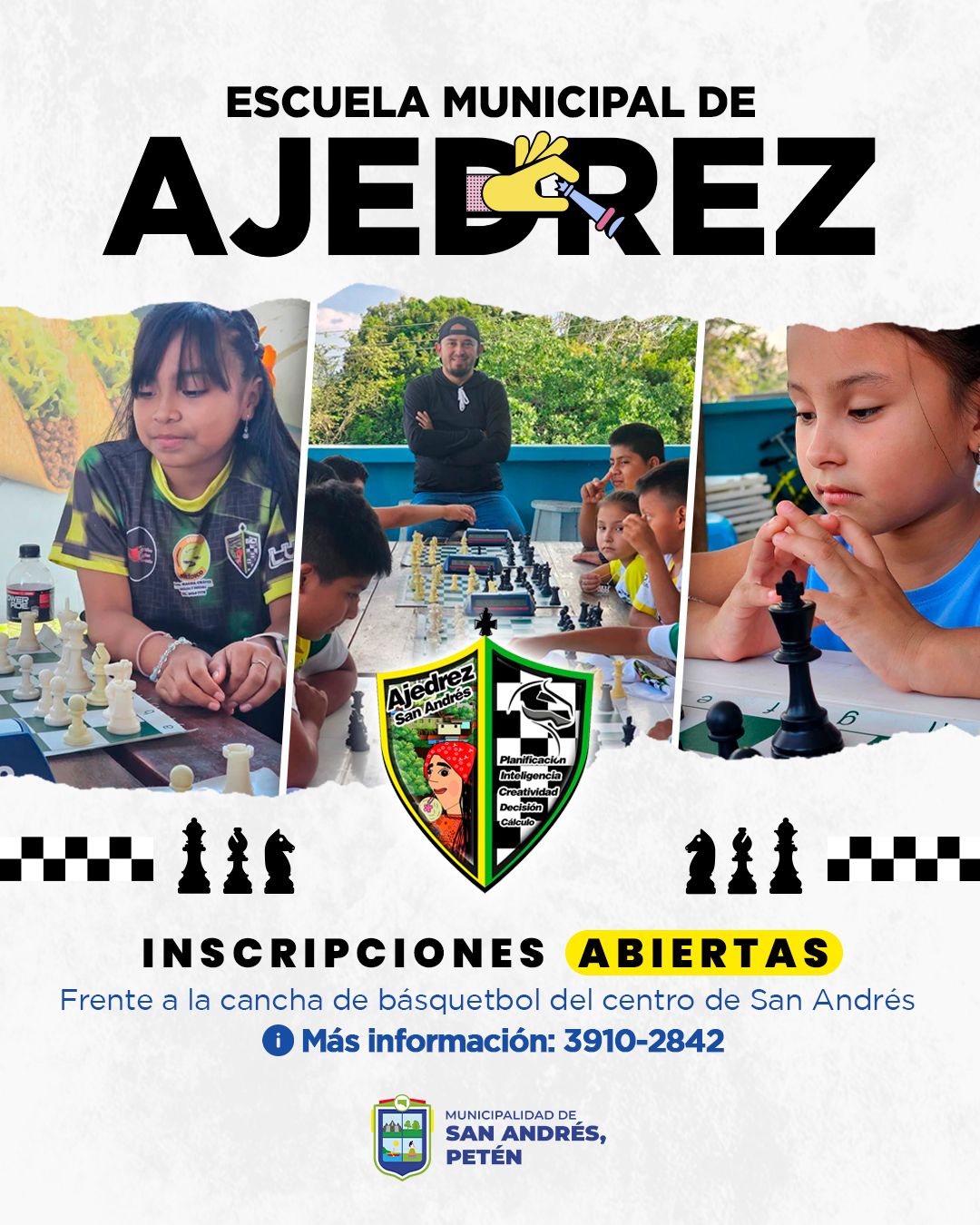 El Sr. Alcalde y Honorable Concejo municipal; invitan a quienes estén interesados en formar parte del grupo de estudiantes de la Escuela Municipal de Ajedrez, pueden comunicarse para mas información al Celular : 3910-2842