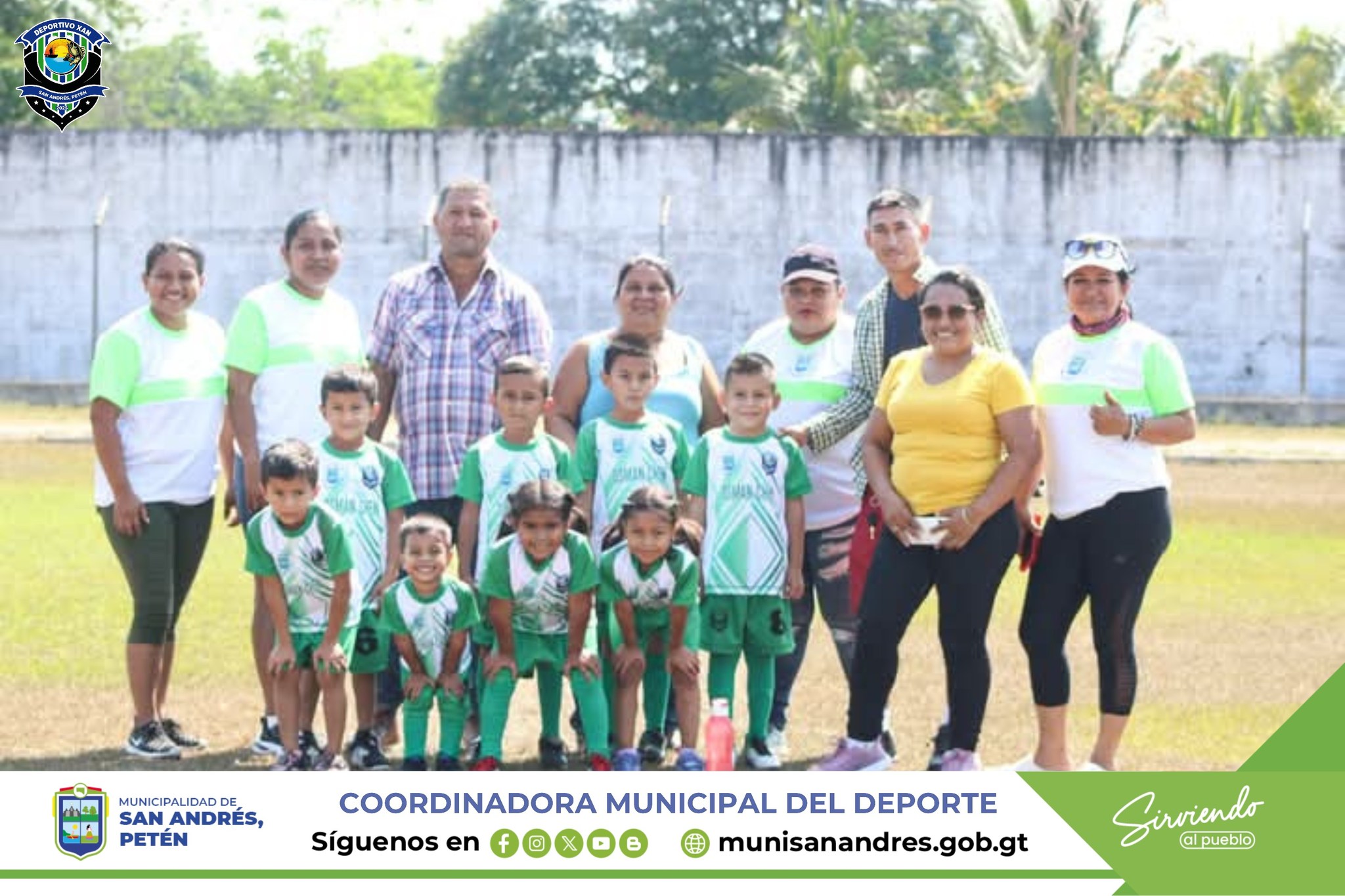 El Sr. Alcalde y Honorable Concejo municipal de San Andrés, Petén, continúan apoyando el deporte fútbol por medio de la Coordinadora Municipal del Deporte.