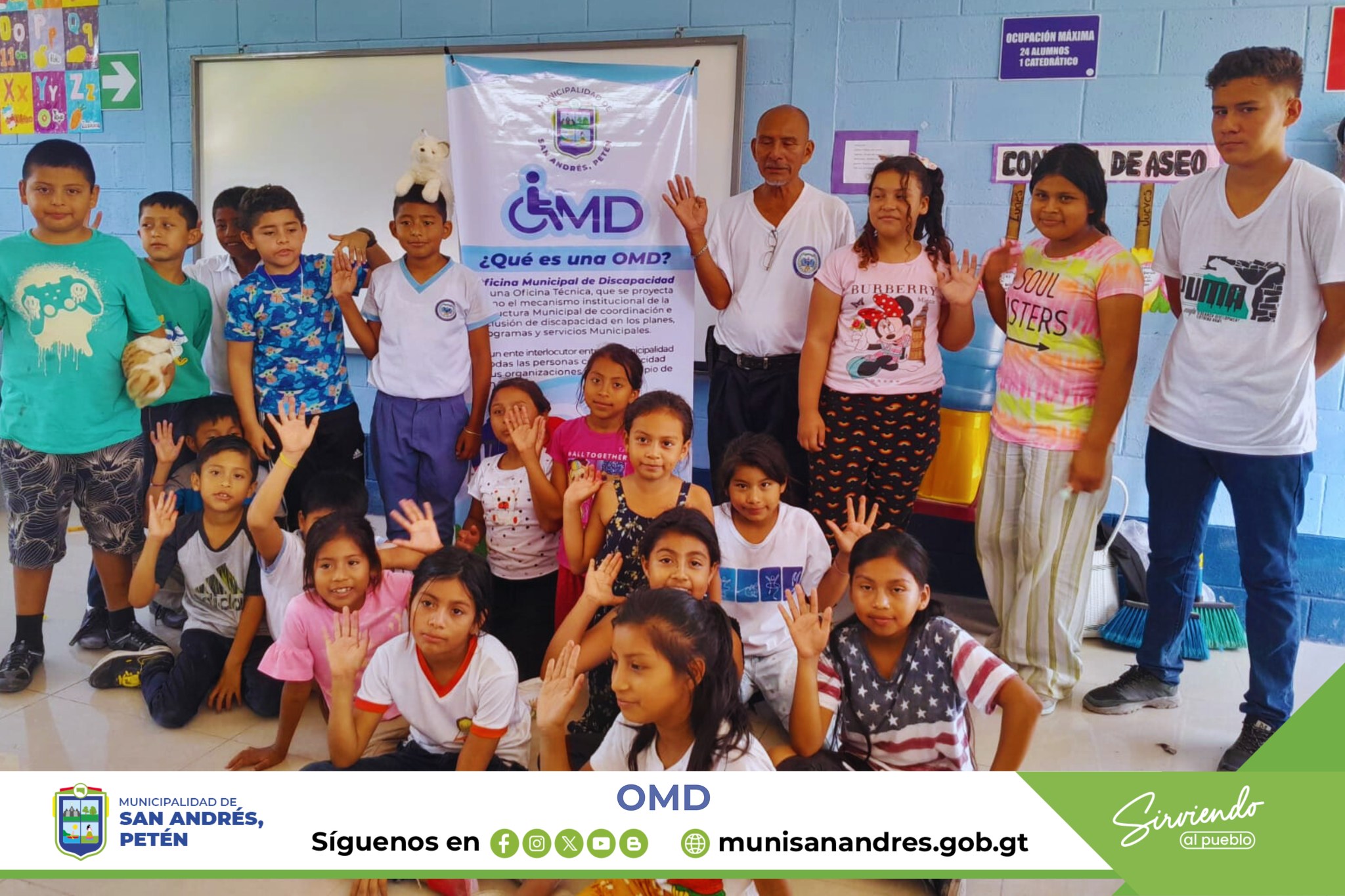 El Sr. Alcalde y Honorable Concejo Municipal de San Andrés, Petén. por medio de la Oficina Municipal de Discapacidad -OMD- Agradecen a la Coordinación Distrital del MINEDUC, Directores y Maestros por el espacio que brindan para la implementación de talleres enfocados en la temática de Discapacidad y Necesidades Educativas Especiales.