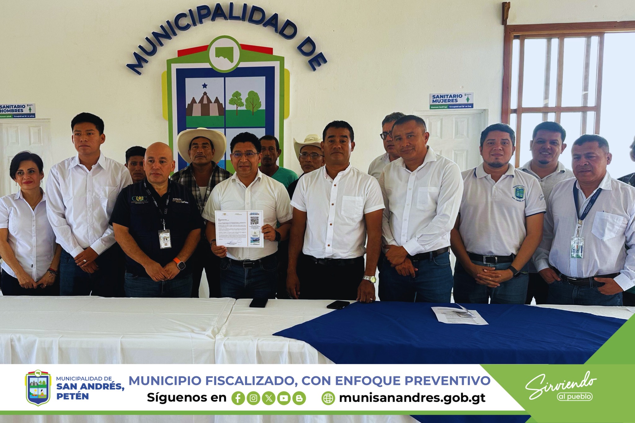 El Sr. Alcalde y Honorable Concejo Municipal de San Andrés, Petén. Acompañados de diferentes Consejos Comunitarios de Desarrollo COCODE Recientemente tuvieron participación en el programa de inauguración: «MUNICIPIO FISCALIZADO, UN COMPROMISO POR LA PREVENCIÓN Y CONFIANZA CIUDADANA» Que presentó la Contraloría General de Cuentas en el salón de reuniones del edificio municipal.