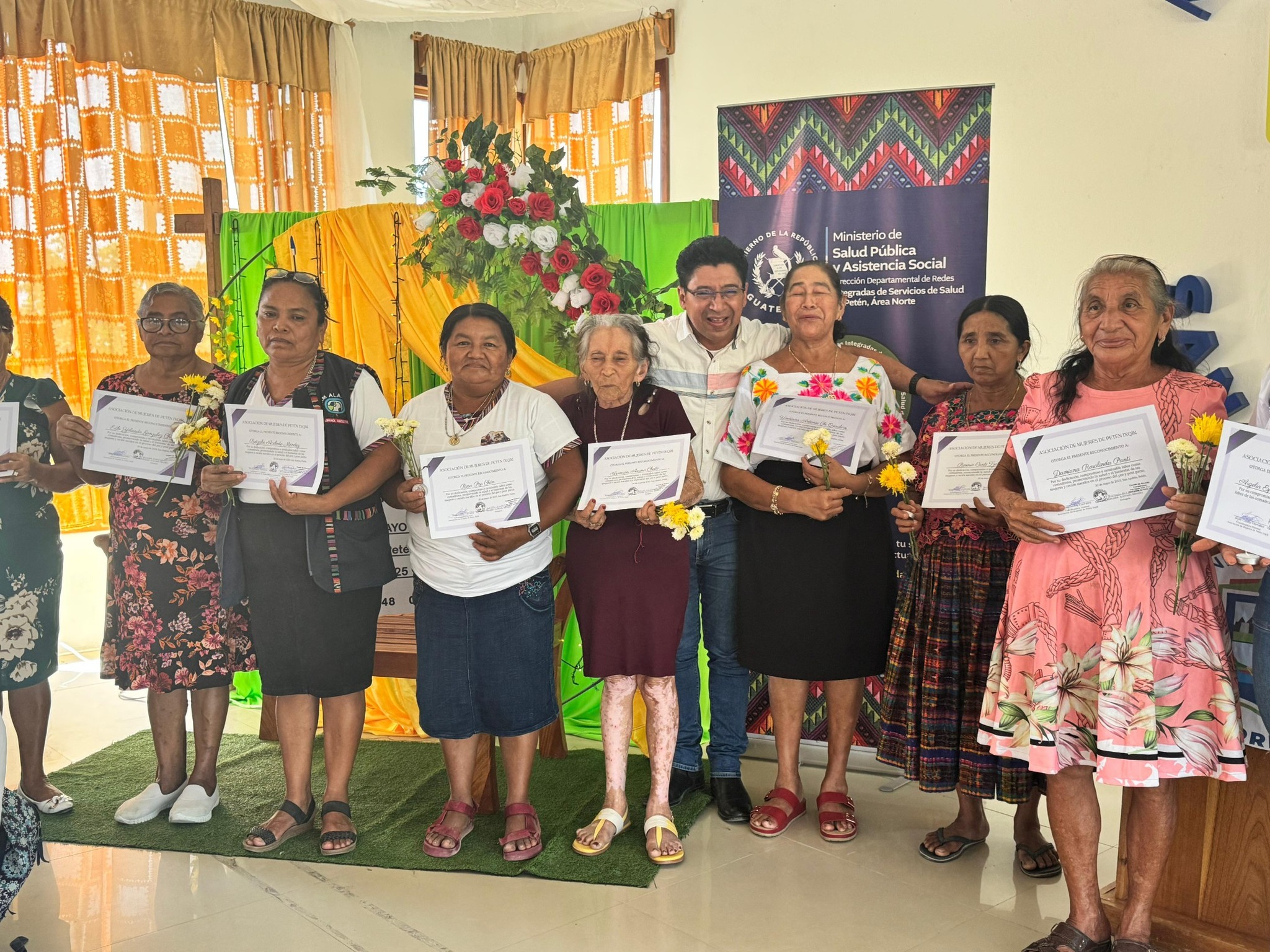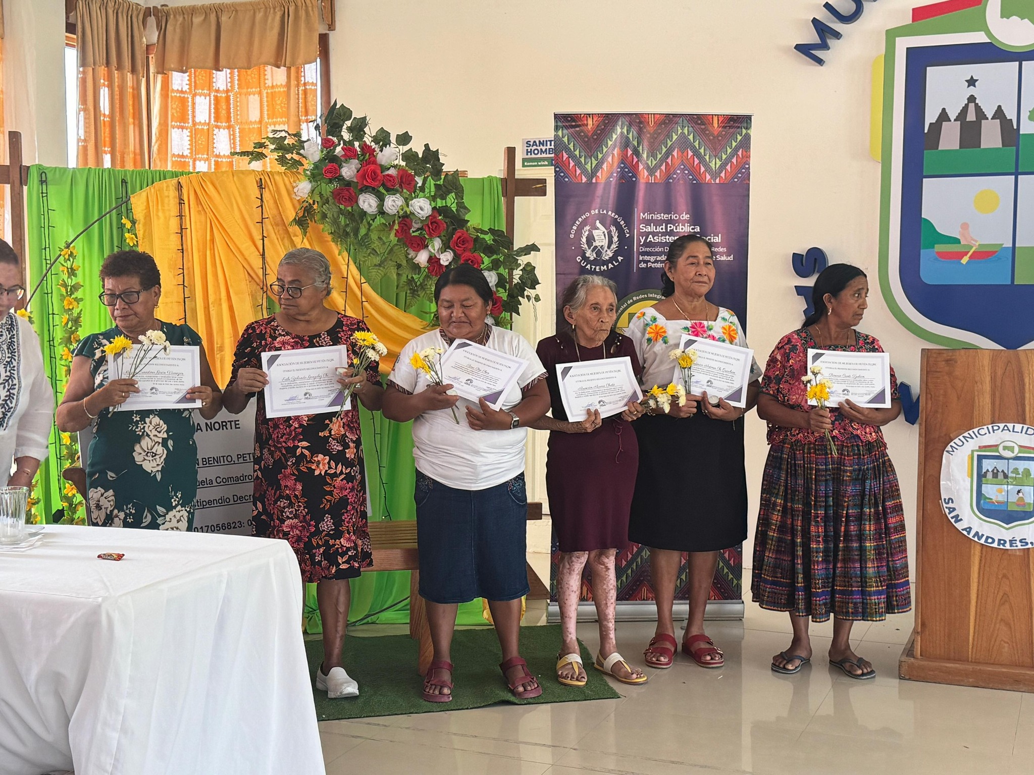 Hoy rendimos honor a esas mujeres que han brindado su tiempo, entrega y, sobre todo, el don de dar lo que sus capacidades han logrado en el acto de traer nuevas vidas a este mundo. Festejamos con alegría este día, en donde se contó con la presencia de invitados especiales como el Dr. César Ortiz, Director del Hospital Regional de San Benito, Petén; la Licda. Isabel Marroquín, Directora del Distrito Municipal de Salud de San Andrés, Petén; la Licda. Argelia Esperanza Rodríguez, encargada de Comadronas del Programa de Salud Reproductiva DDRISS, Petén Norte; el Dr. José Manuel Ochaeta, Director del Área de Salud Norte; y parte de sus equipos, quienes, aprovechando la actividad de celebración, hicieron entrega del estipendio económico de Q2,000.00 a cada comadrona, otorgado por el Gobierno Central de Guatemala.