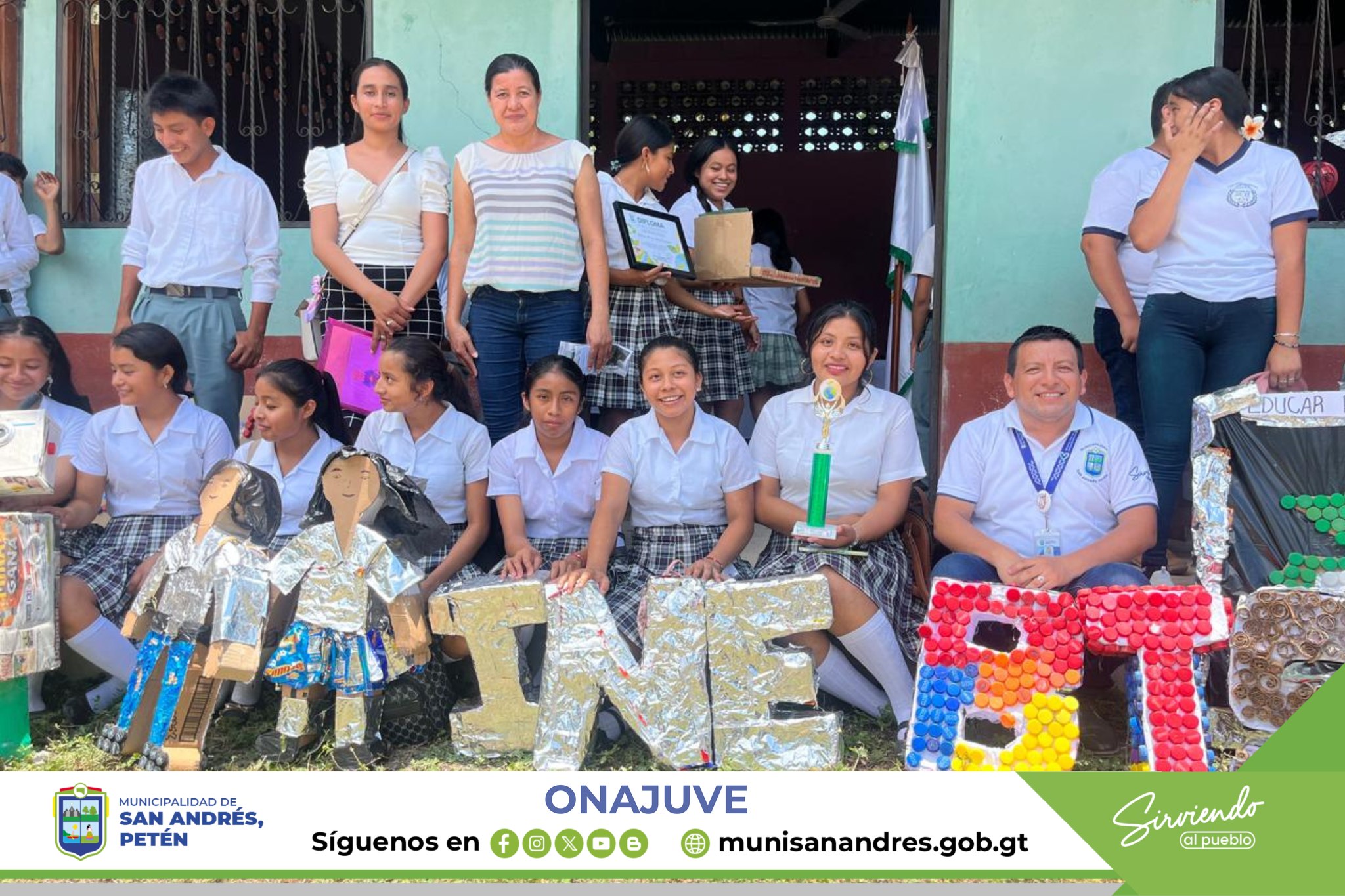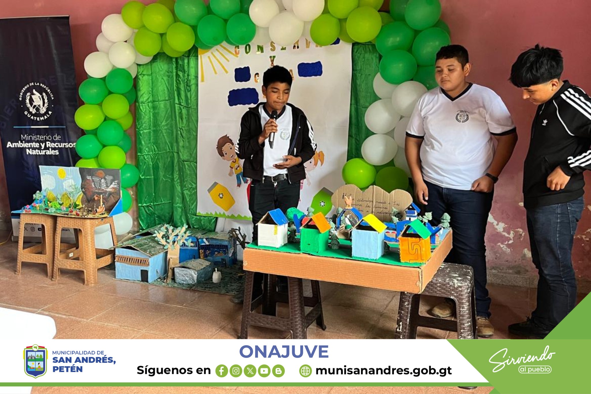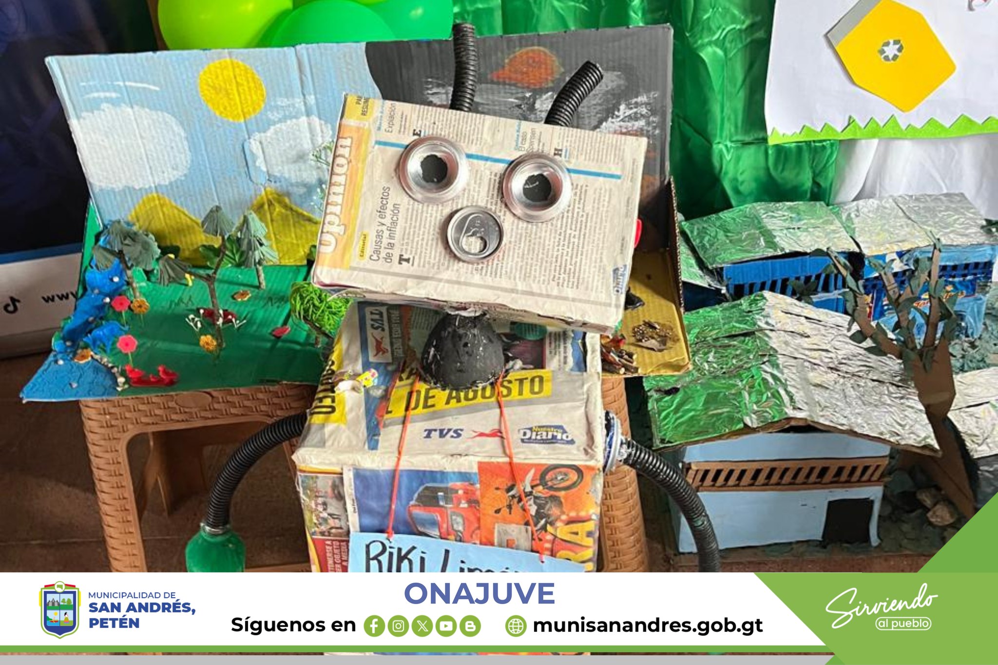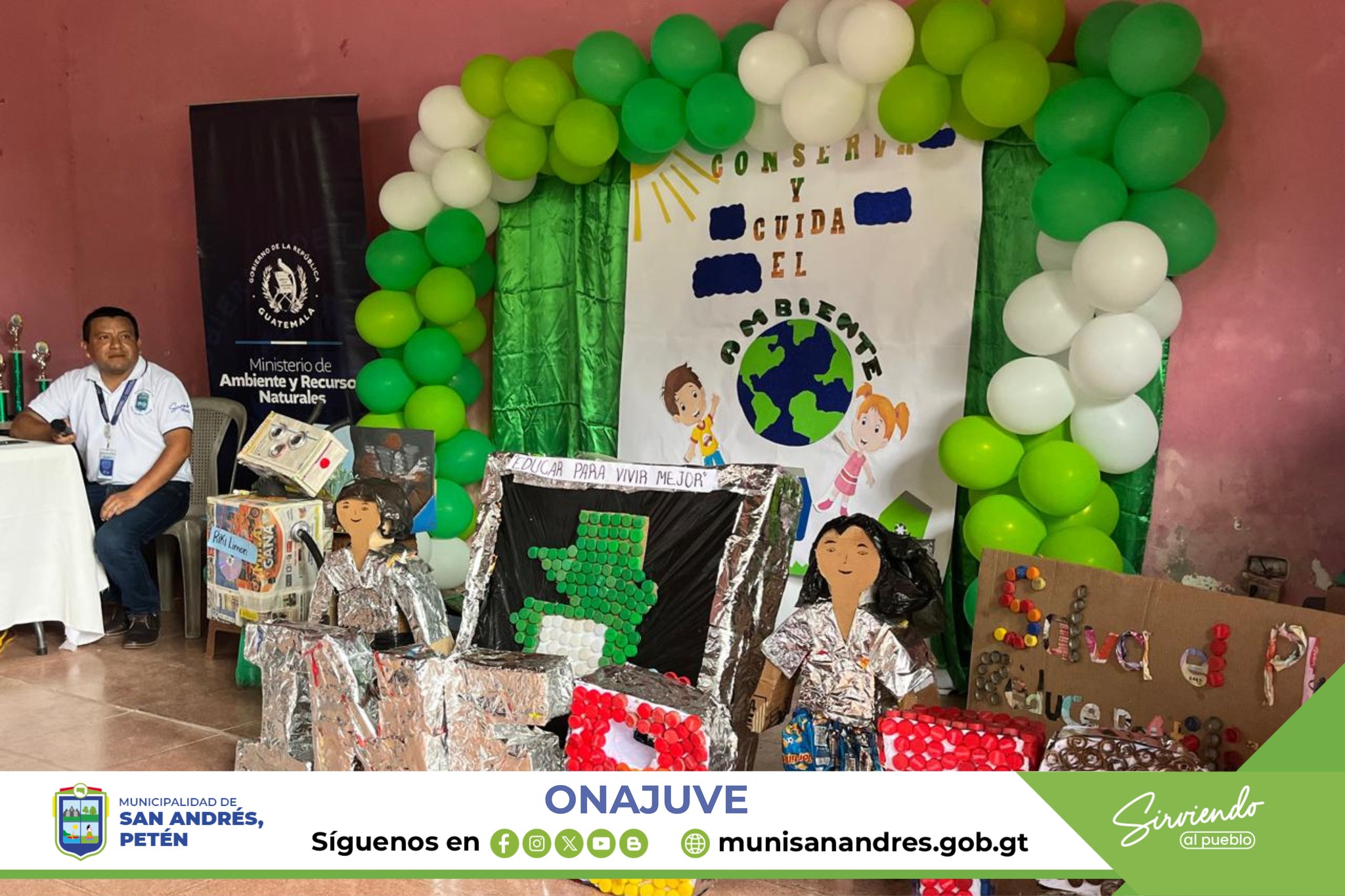 En el marco del Día Mundial del Medio Ambiente, la Oficina de la Niñez, Adolescencia y Juventud de la Municipalidad de San Andrés, Petén, en coordinación con la Cooperativa Olazar R.L. de Sacpuy y la delegación del MARN en Petén, llevaron a cabo un conversatorio y exposición de maquetas, ornamentos y trajes elaborados con material reciclado.