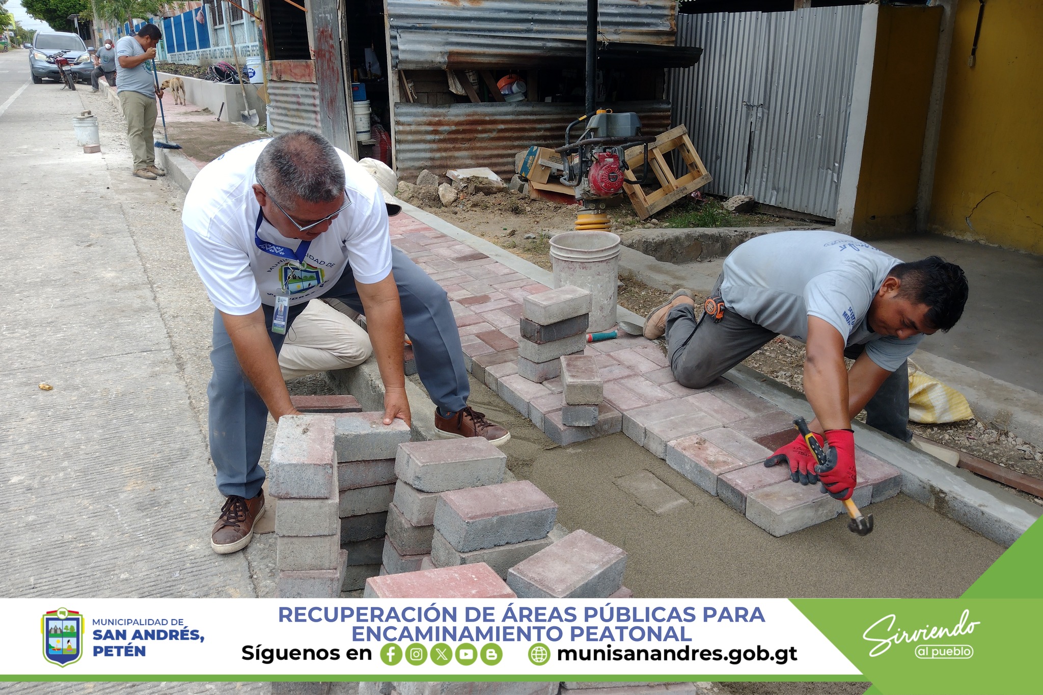 La Municipalidad de San Andrés, Petén, a través de la Unidad de Mantenimiento y Ornato en coordinación con la Dirección Municipal de Proyectos, (DMP) Y con fondos propios municipales. Continúa trabajando en la recuperación de espacios públicos para la construcción del encaminamiento peatonal en el área central del municipio, un área con alta circulación vehicular.