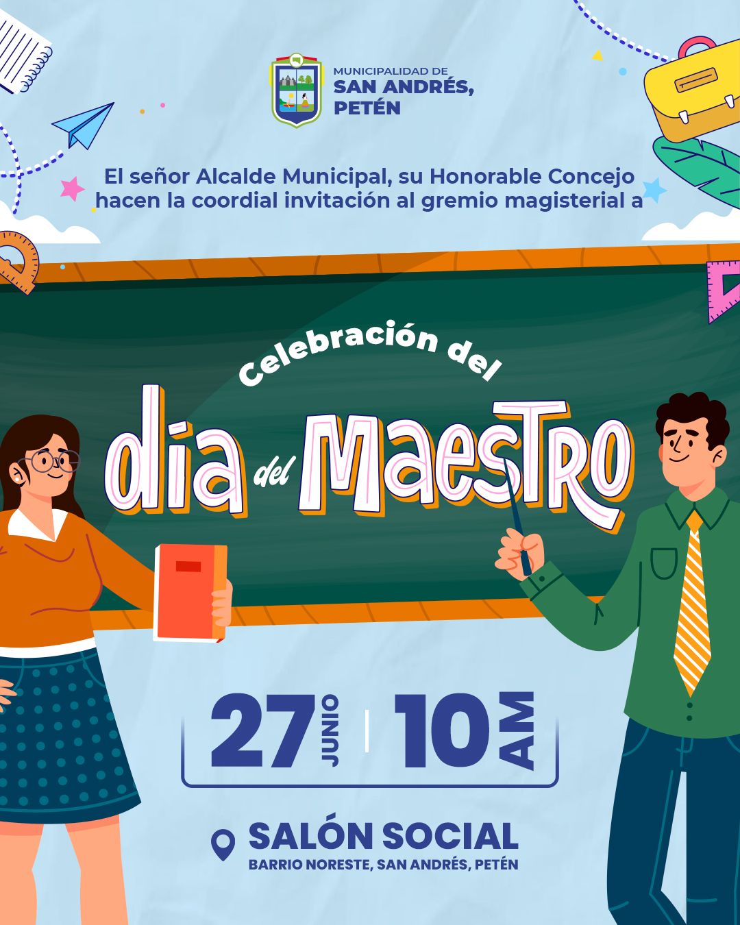 de los diferentes distritos del municipio de San Andrés, Petén, a celebrar con alegría y reconocimiento el Día del Maestro.