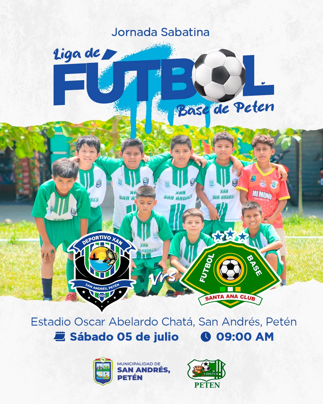 El Sr. Alcalde Municipal y Honorable Concejo de San Andrés, Petén, invitan cordialmente a toda la población a disfrutar de la Jornada Sabatina de la Liga de Fútbol Base de Petén.