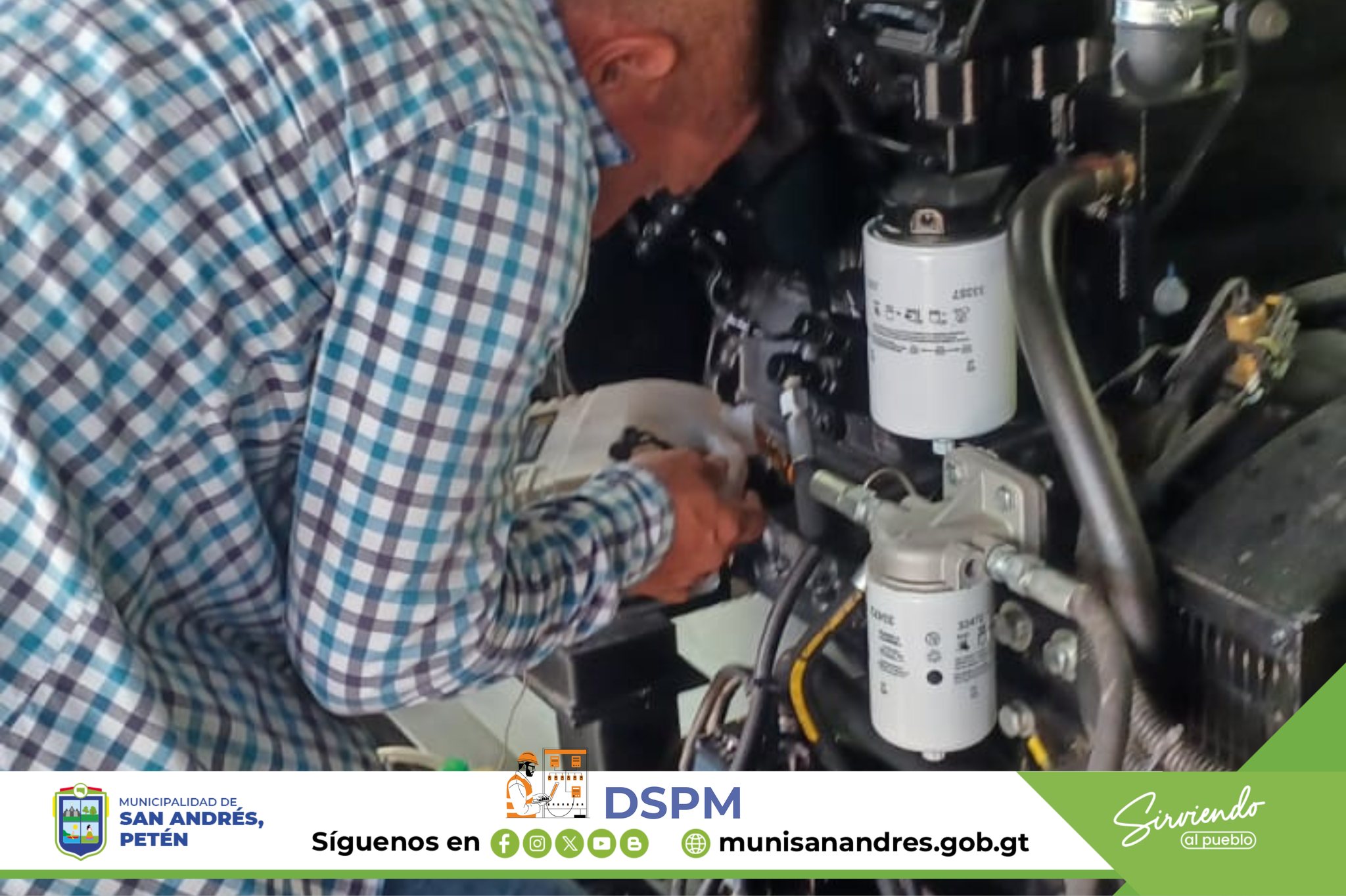 El personal de la Dirección de Servicios Públicos Municipales (DSPM) de San Andrés, Petén, lleva a cabo de manera constante y programada labores de cambio de aceite y mantenimiento preventivo en los generadores instalados en las diferentes estaciones de bombeo de agua del municipio.