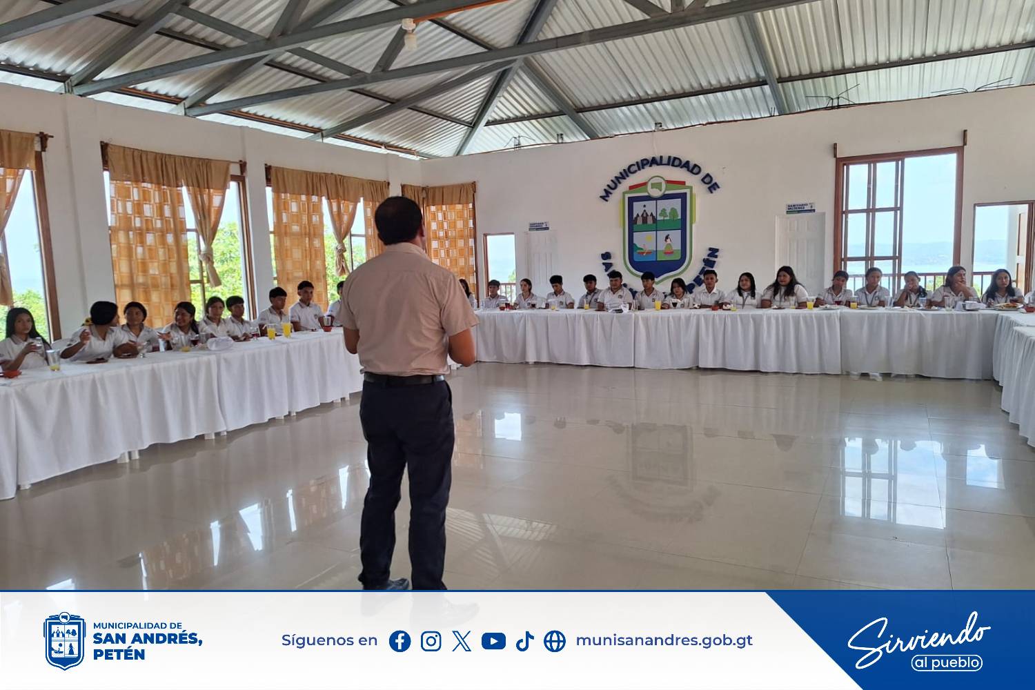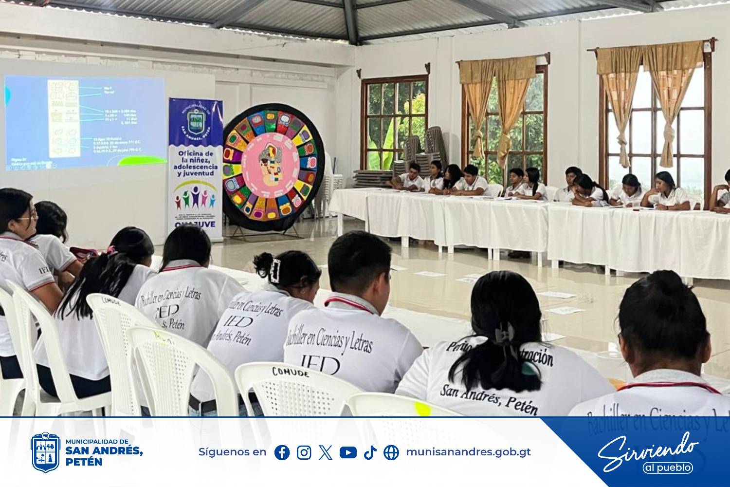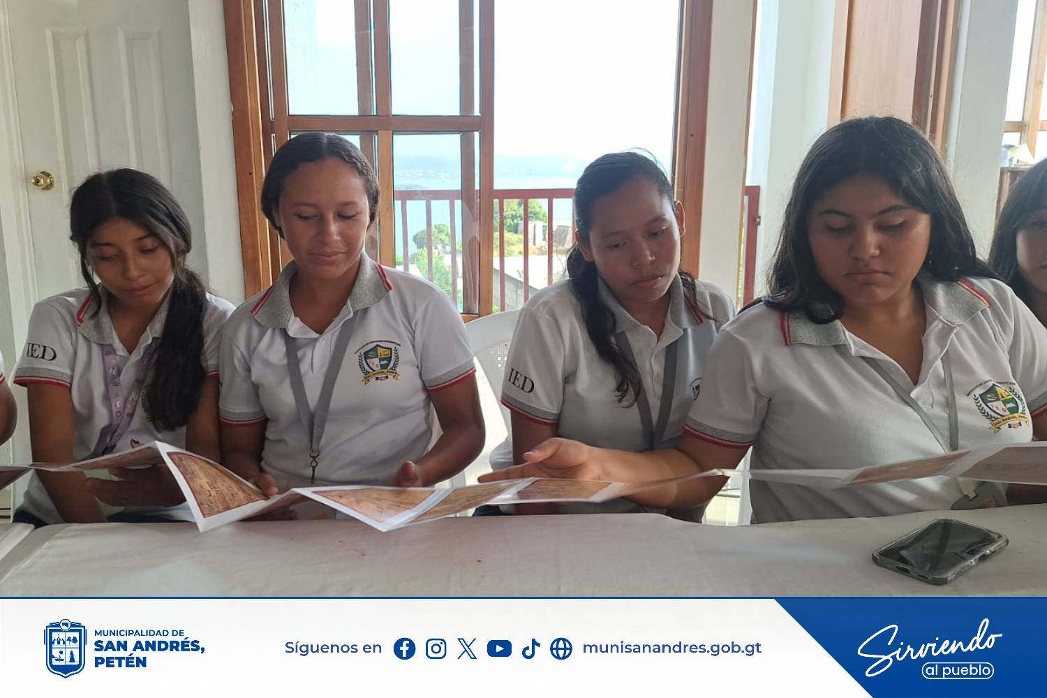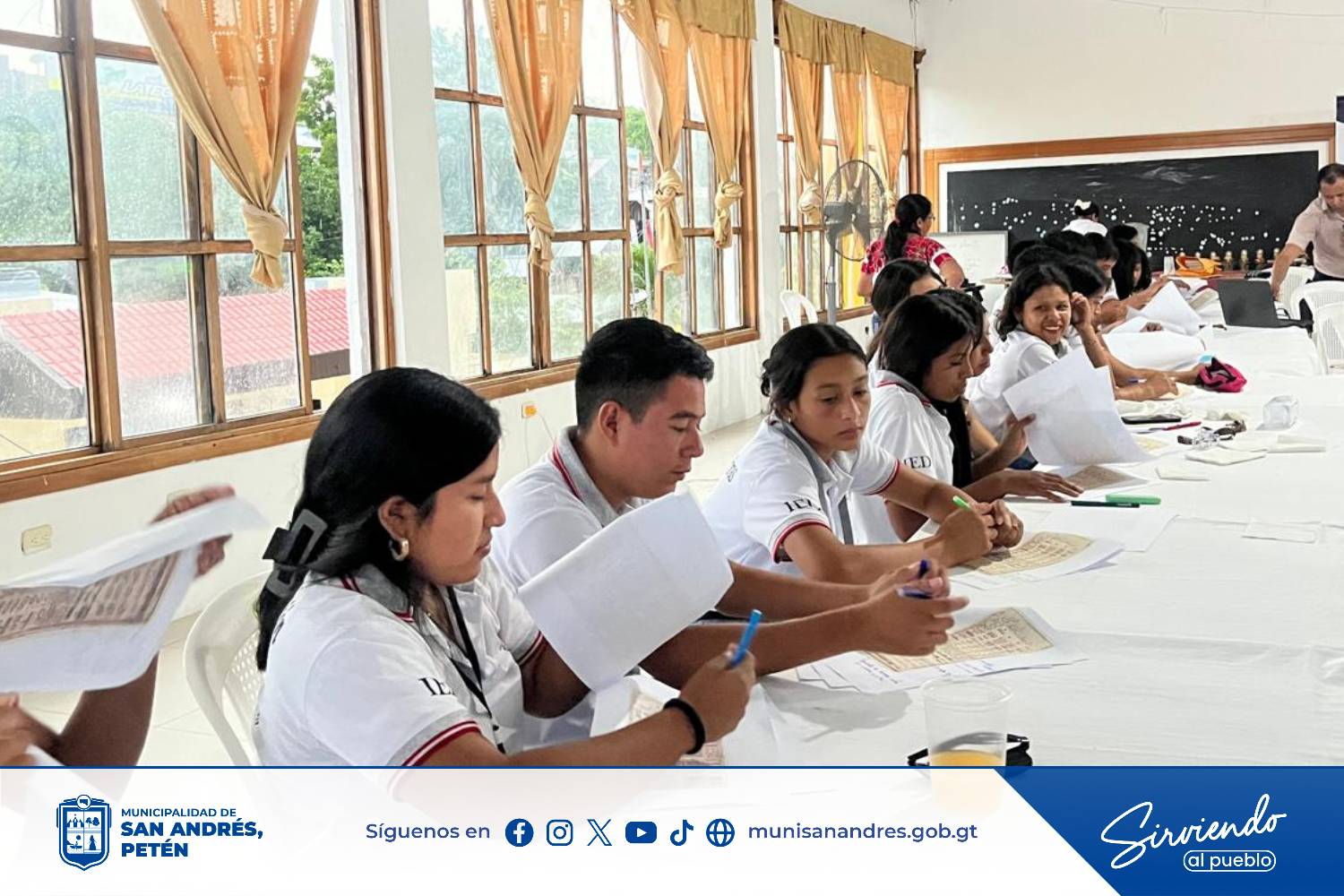 El señor Alcalde Municipal y su Honorable Concejo, a través de la Oficina de la Niñez, Adolescencia y Juventud (ONAJUVE), en coordinación con el Ministerio de Cultura y Deportes, realizaron los días 6, 7 y 8 de agosto un taller de formación con estudiantes del Instituto de Educación Diversificada de San Andrés, Petén.