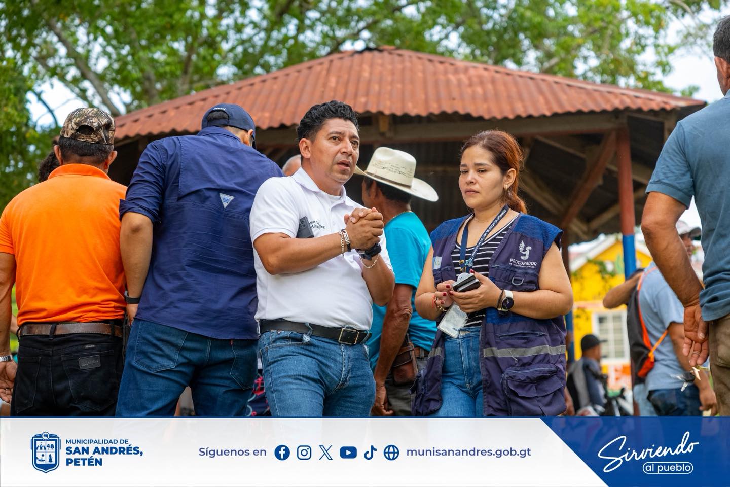 El Señor Alcalde Municipal de San Andrés, miembros del Concejo, en compañía del Señor Diputado Benjamín Ipiña y la Procuraduría de los Derechos Humanos, sostuvieron una reunión con vecinos y líderes de las 37 comunidades de la Laguna del Tigre, ubicadas a partir del río San Pedro, límite entre los municipios de La Libertad y San Andrés, específicamente en las comunidades de El Naranjo y Santa Marta.