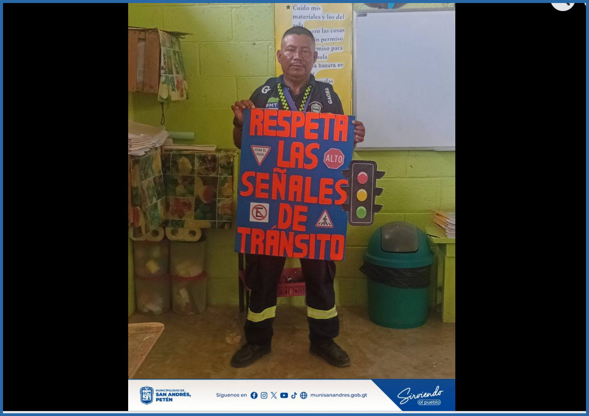 En esta oportunidad, el equipo de la PMT llevó a cabo una jornada educativa en la Escuela Primaria de la Comunidad de Sacpuy, San Andrés, Petén, promoviendo en los estudiantes el conocimiento y respeto hacia la normativa vial para contribuir a una cultura de prevención y seguridad.