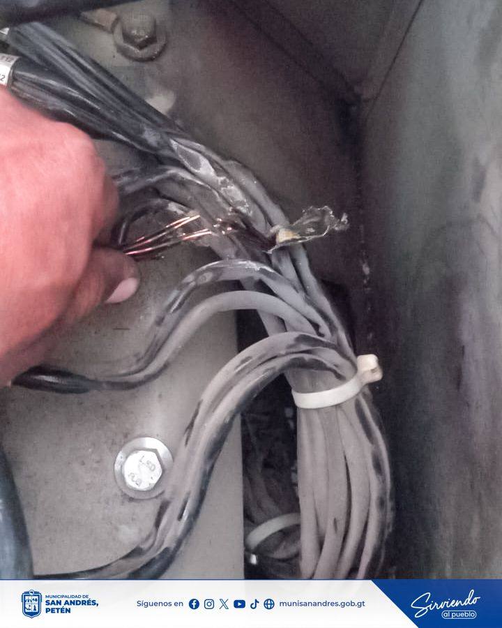 La Municipalidad de San Andrés, Petén, a través de la Dirección de Servicios Públicos, informa a la población de Sacpuy que el servicio de agua potable se encuentra suspendido temporalmente debido a un cortocircuito en los cables que suministran energía al generador, el cual es esencial para el sistema de bombeo del vital líquido.