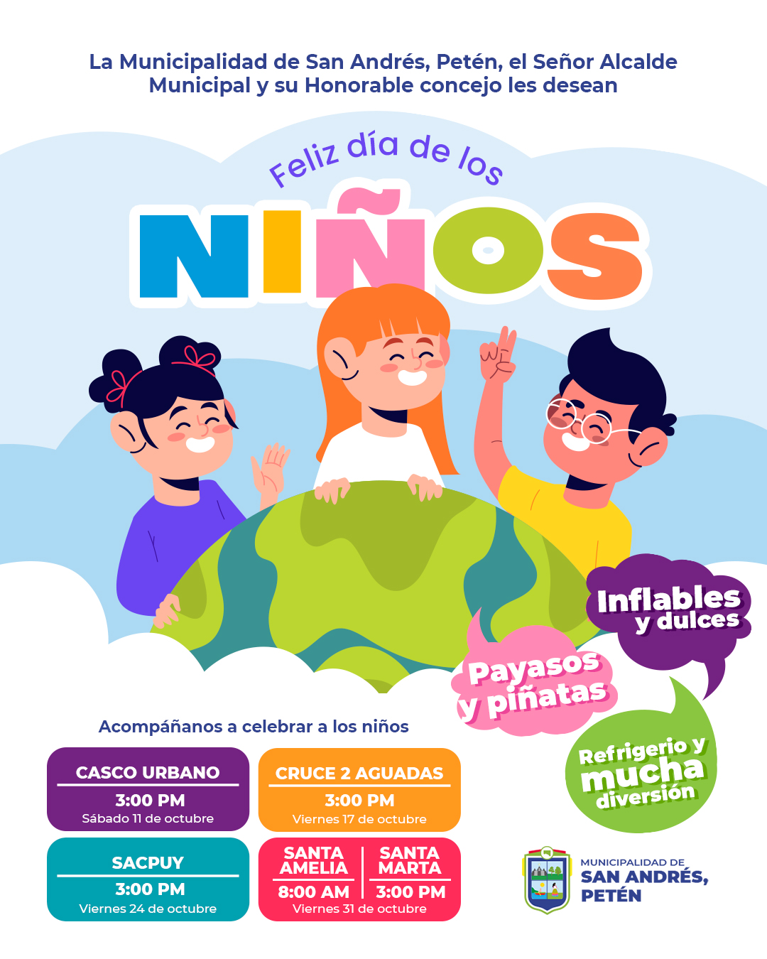 Les deseamos un día lleno de juegos, risas y momentos inolvidables, y reafirmamos nuestro compromiso de trabajar por un municipio donde cada niño y niña pueda crecer feliz, seguro y con todas las herramientas para alcanzar sus metas.