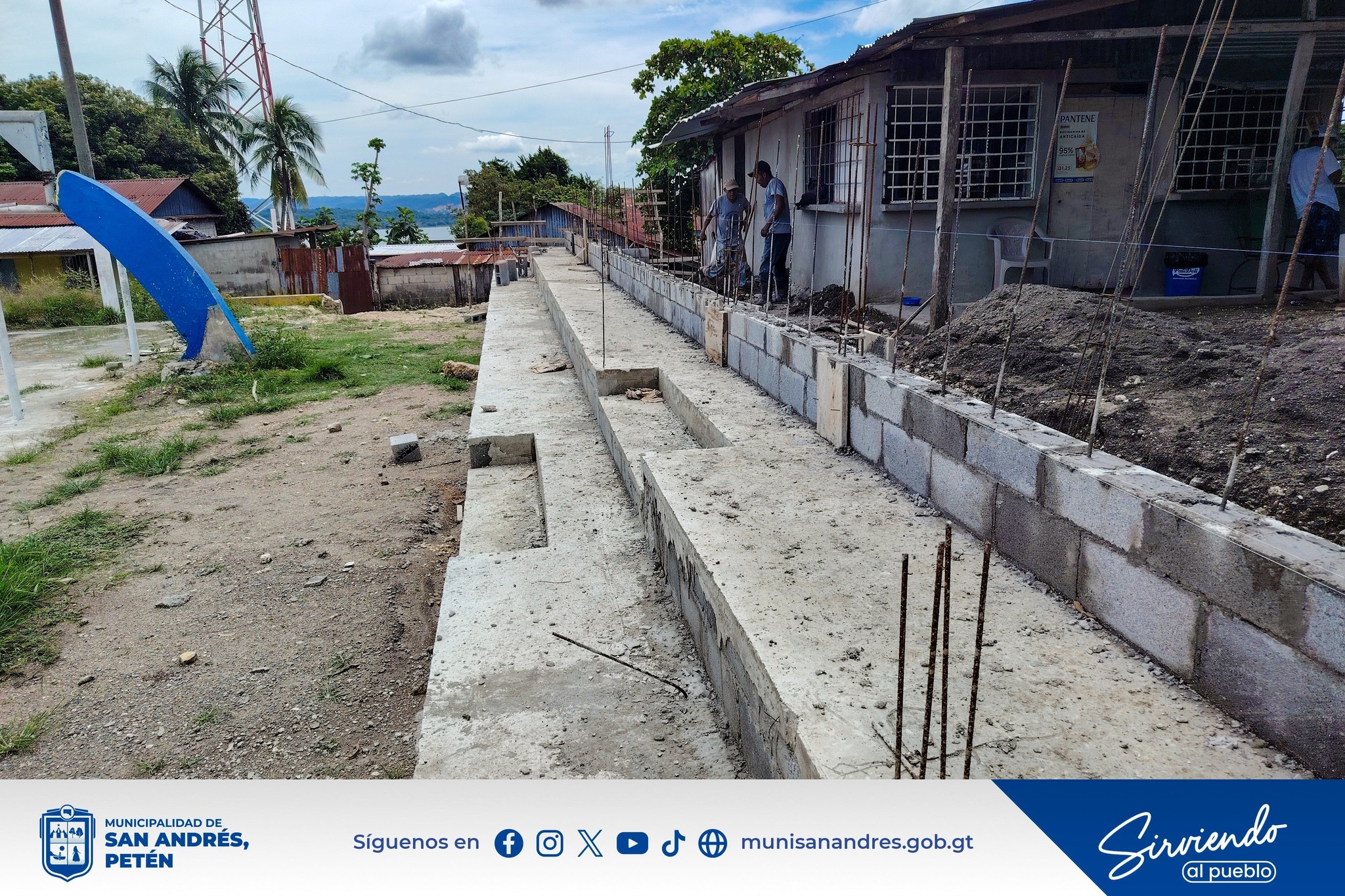 El equipo de albañiles municipales ha concluido la fundición de las gradas ubicadas en el lado norte de la instalación.