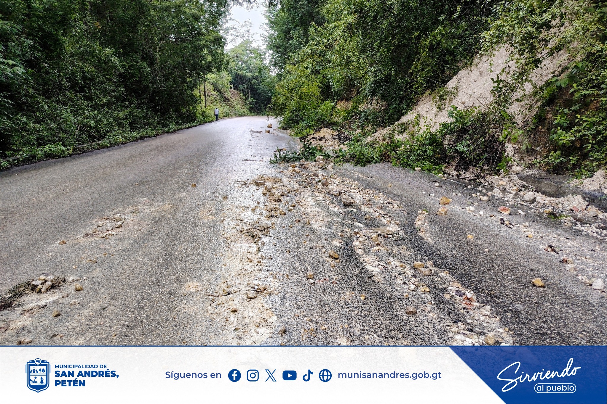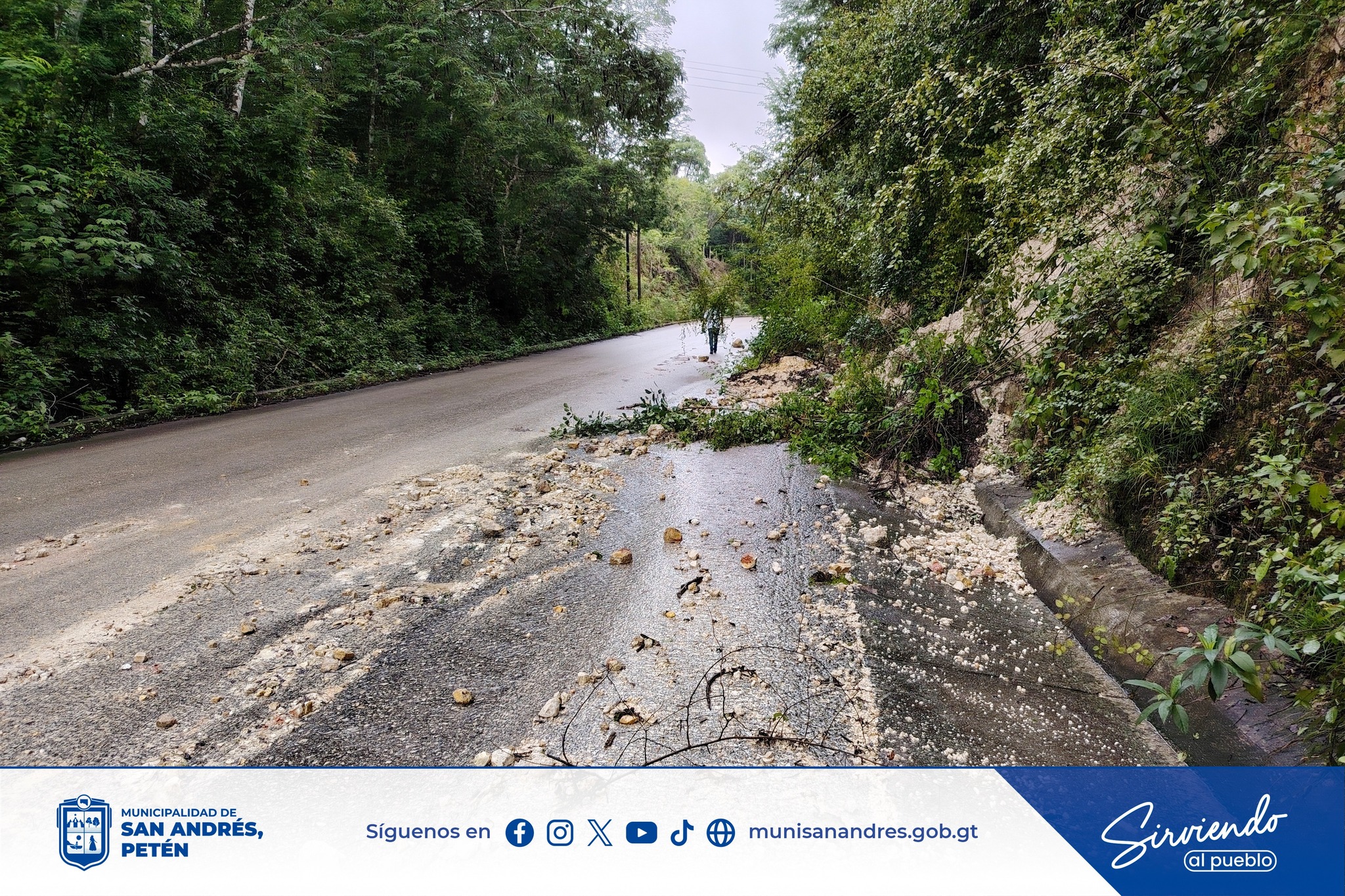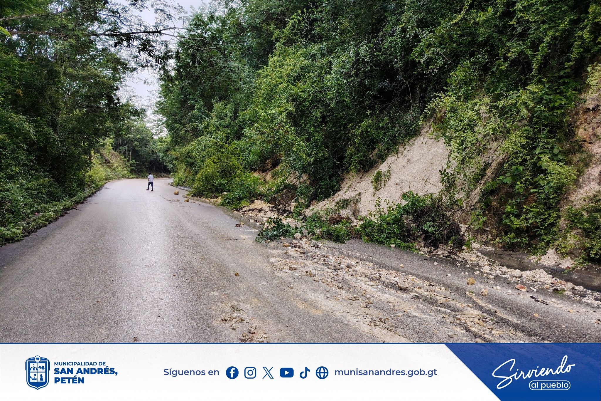La Municipalidad de San Andrés, Petén, a través de la Dirección Municipal de Gestión Integral de Riesgos de Desastres, informa a la población que en el sector frente a la finca La Potra se ha registrado un derrumbe que obstaculiza parcialmente la vía.