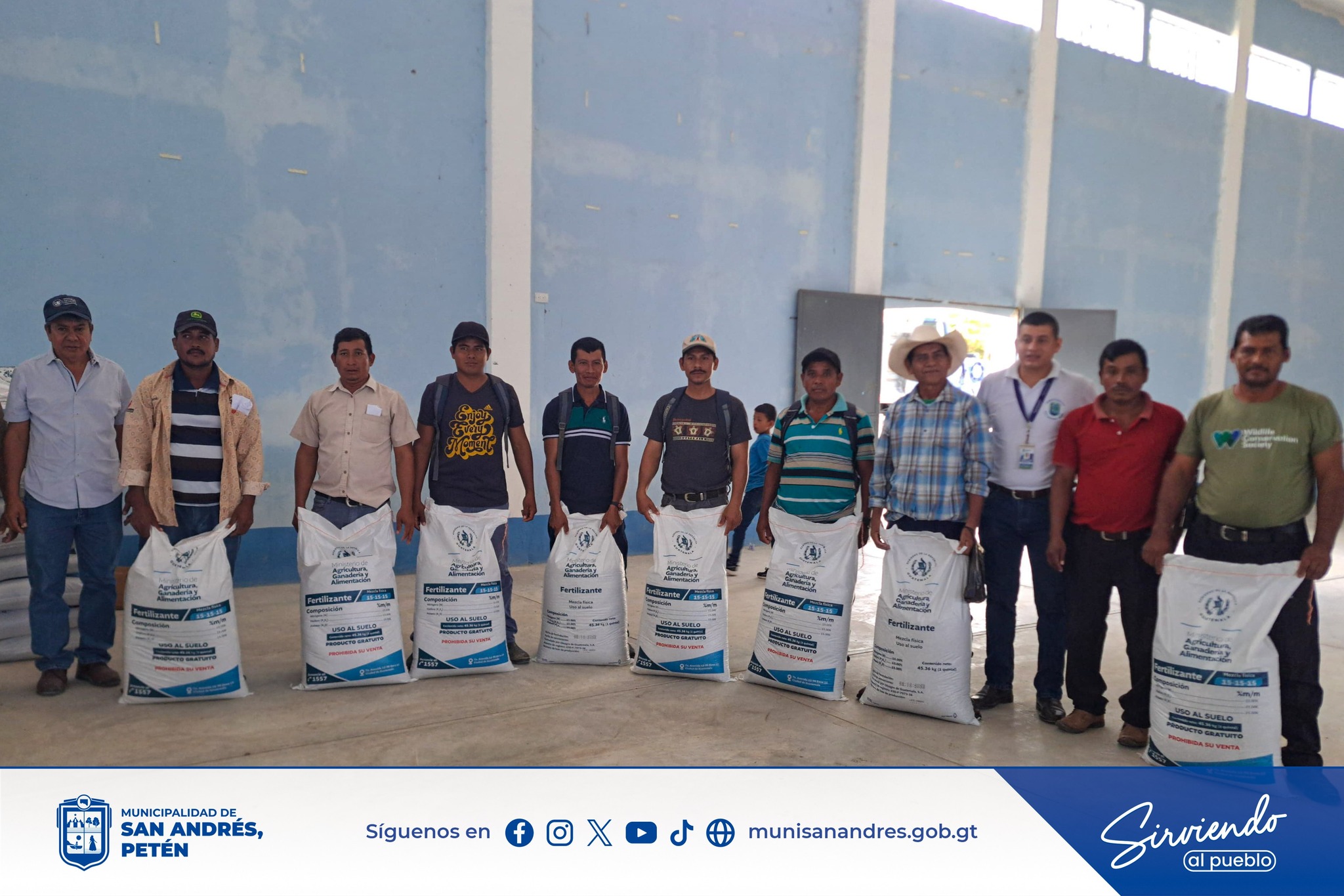 La Municipalidad de San Andrés, Petén, a través de la Oficina Municipal de Seguridad Alimentaria y Nutricional (OMSAN), dio inicio a la entrega de fertilizante a productores beneficiados, como resultado de las gestiones realizadas por el señor Alcalde Municipal ante el Ministerio de Agricultura, Ganadería y Alimentación (MAGA).