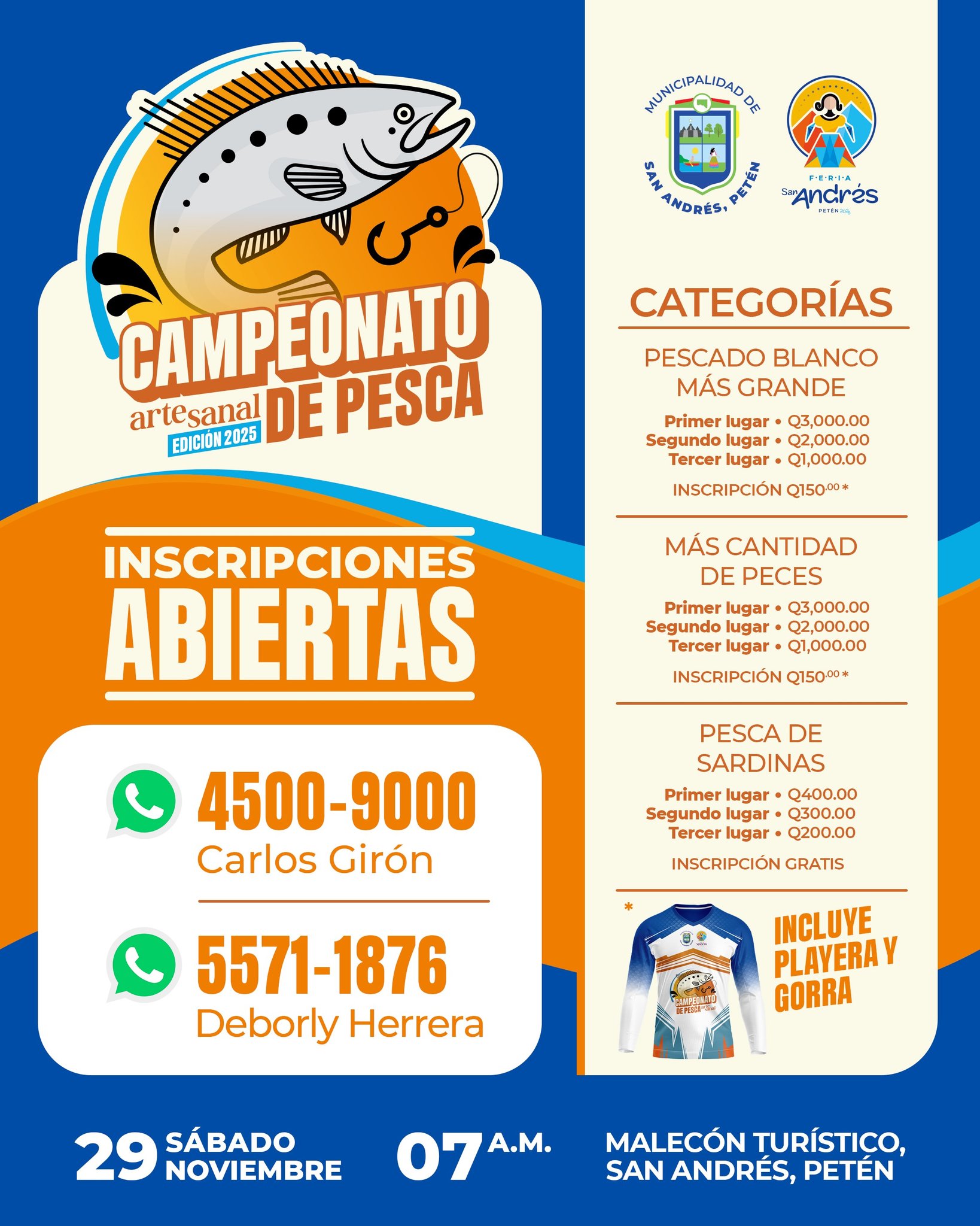 La Comisión del Campeonato de Pesca invita cordialmente a todos los pescadores y amantes de la aventura a participar en una nueva edición de este importante evento, en el marco de la Feria del Municipio de San Andrés, Petén.