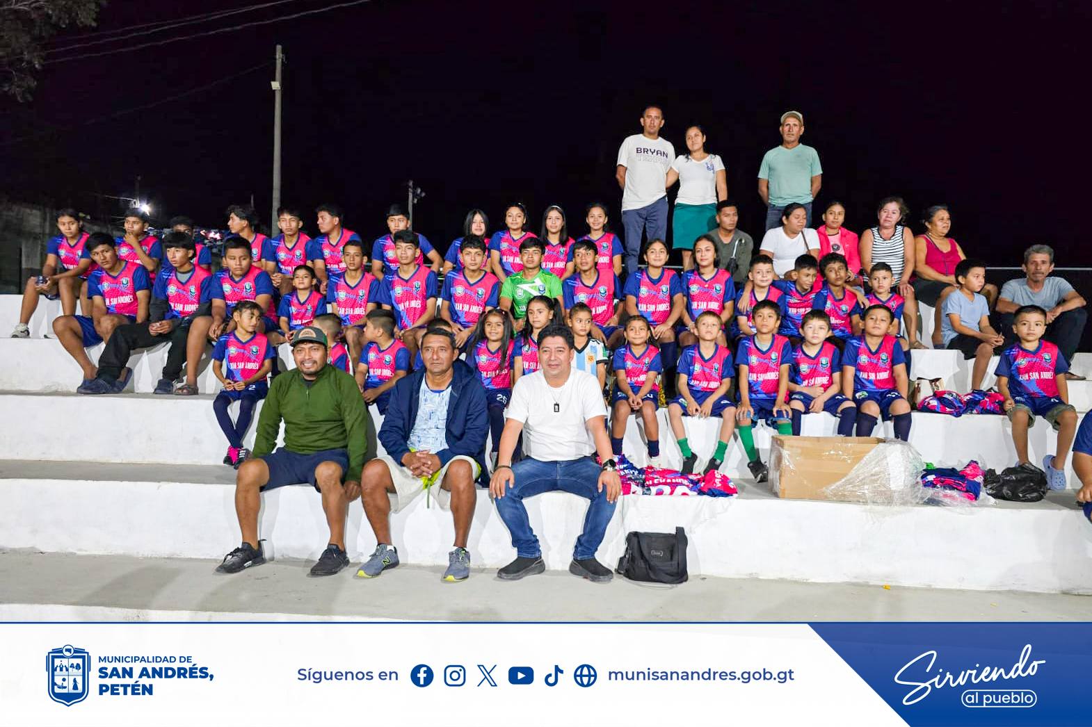 Recientemente, se realizó la entrega de uniformes deportivos a los integrantes de la Escuela de Fútbol Xan San Andrés, en sus diferentes categorías, acción que contribuye al fortalecimiento y desarrollo de las actividades deportivas.