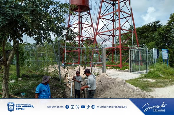 Personal de la Oficina de Servicios Públicos trabaja en la instalación de la tubería de llenado y distribución hacia el nuevo tanque elevado con capacidad de 25 mil galones, el cual permitirá mejorar el servicio de agua potable para los vecinos de Barrio Villa Nueva, Nueva Juventud y parte del Barrio Norte.