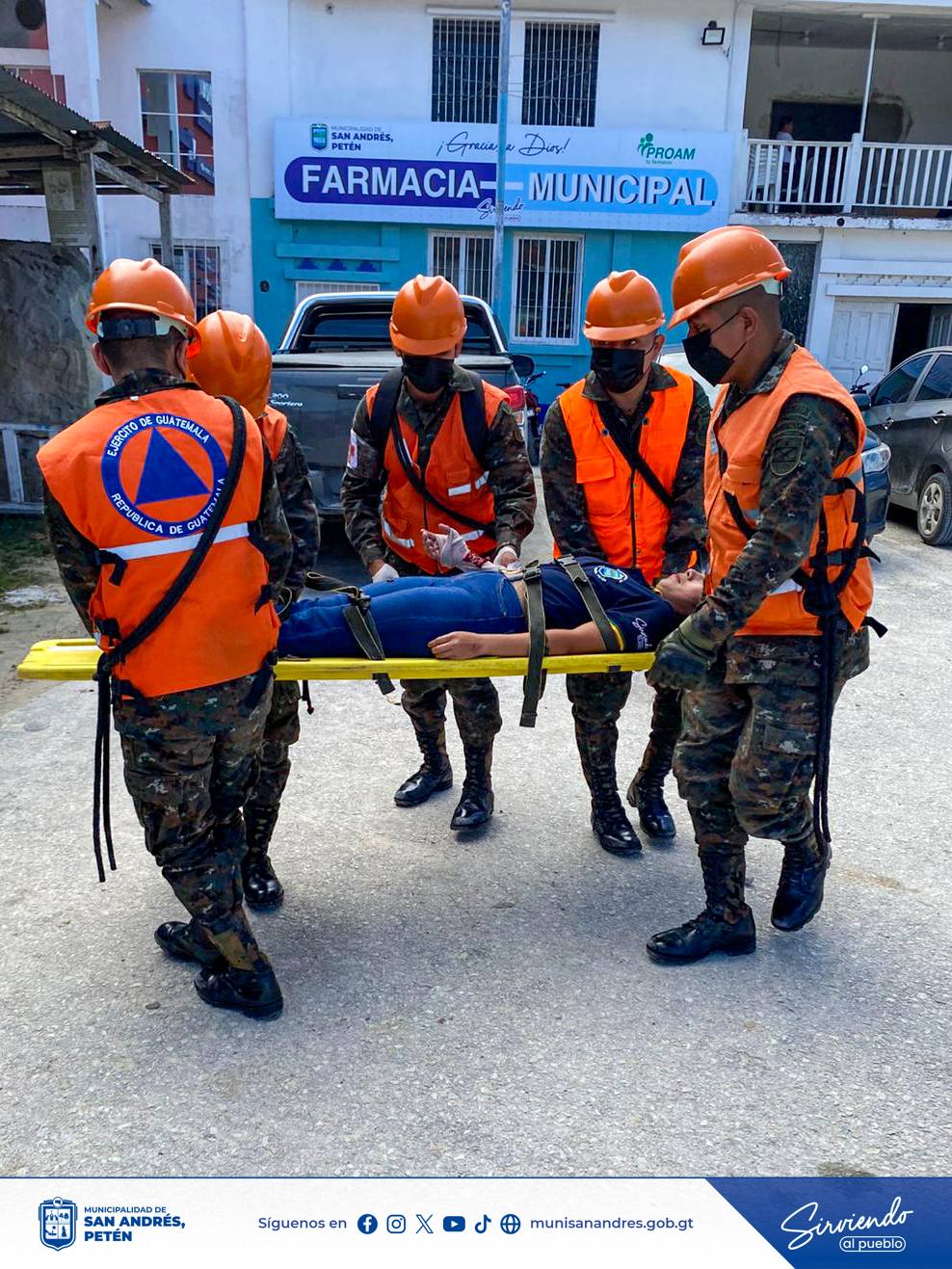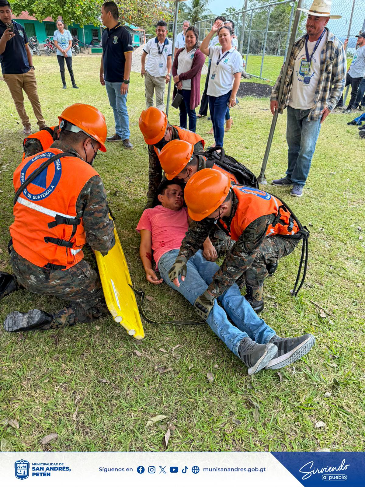 Esta importante actividad se desarrolló con el valioso apoyo y participación de empleados municipales, personal de CONRED, miembros del puesto de mando del Ejército de Guatemala del Destacamento Paxbán y personal de centro de atención permanente (CAP) quienes unieron esfuerzos para poner en práctica los protocolos de respuesta ante emergencias.