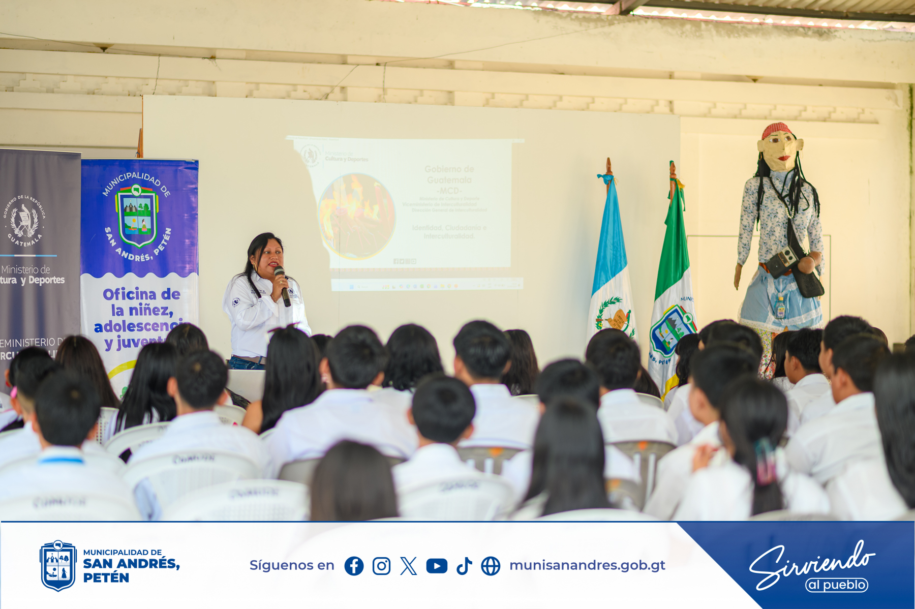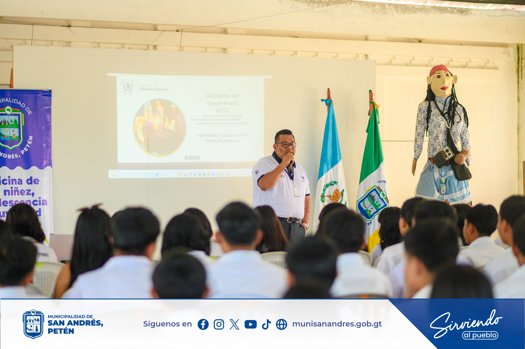 Durante la actividad se abordaron temas orientados al reconocimiento de la diversidad cultural del país, fomentando el respeto entre los pueblos Maya, Garífuna, Xinka y Ladino, así como el fortalecimiento de valores, tradiciones y el respeto por nuestras raíces.