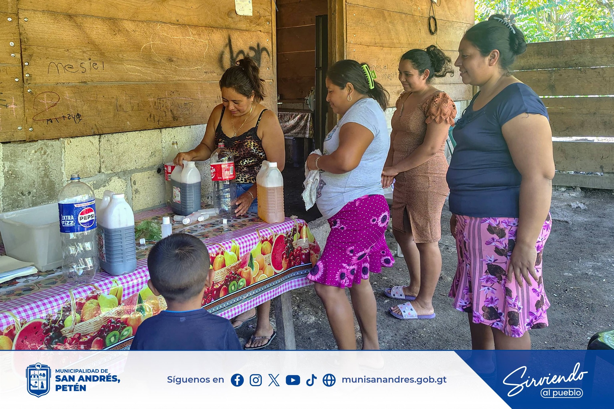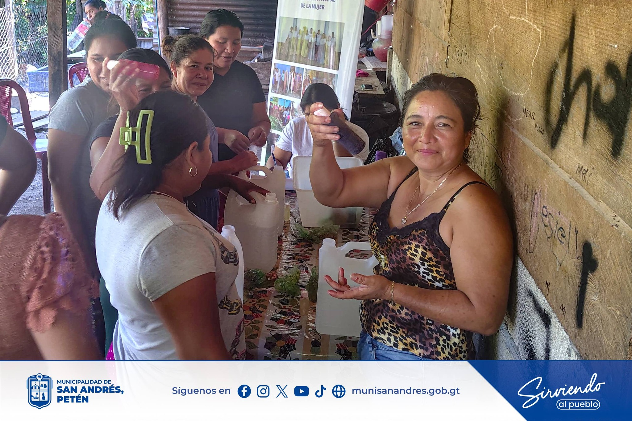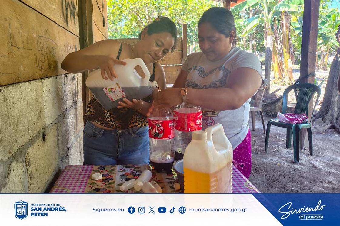En el caserío Cruce Dos Aguadas se realizó un taller de elaboración de desinfectante, donde las participantes aprendieron de forma práctica nuevas habilidades que aportan al cuidado del hogar y generan oportunidades para mejorar la economía familiar.